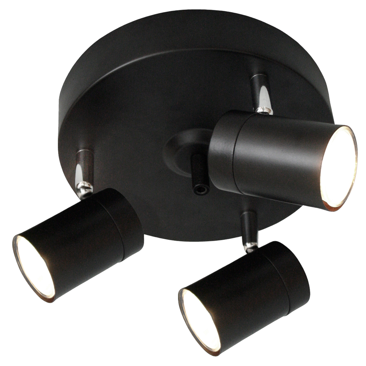 Correct spotlight 3 -kattovalaisin mustaa metallia. Ripustuskoukku. Korkeus 15 cm, halkaisija 14 cm. GU10 35Wx3, lamput eivät mukana.