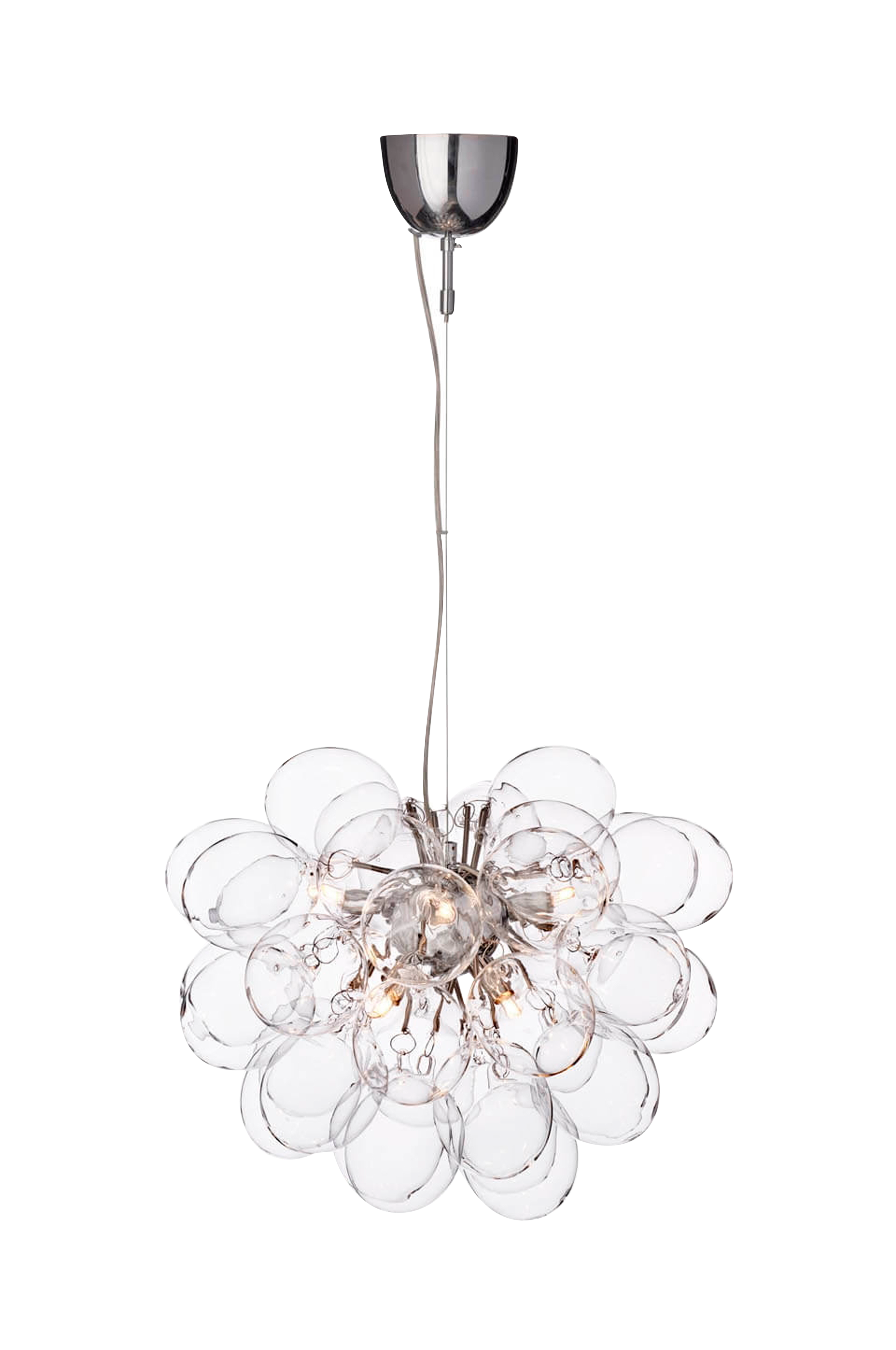 Hemmottele itseäsi ylellisyydellä ja tyylikkyydellä gross kattovalaisimella ø50cm, joka on 37 kappaleesta koostuva leijuva pilvi, joka koostuu 37:stä läpinäkyvästä, käsinpuhalletusta lasikupista, jotka muistuttavat atomeja ja levittävät ihanaa hohtoa. Gross on by rydénin oma mallisto ja tuote, joka erottuu verkkokaupassamme. Valaisin on saatavana useissa eri väreissä; mattavalkoinen, viininpunainen, meripihkainen, savunharmaa, monivärinen, läpinäkyvä ja helmiäisväri. Anna gross kattovalaisimen tulla huoneesi arvokkaaksi ja luoda todellinen vetonaula kotiisi. Se näyttää hyvältä ainoana sarjan tuotteena tai yhdessä muiden gross-sarjan tuotteiden kanssa. Valaisimen halkaisija on 50 cm, ja sitä voidaan nostaa ja laskea. Johdon kokonaispituus on 120 cm. Valonlähde, jossa on g9-pistorasia, ostetaan erikseen.
