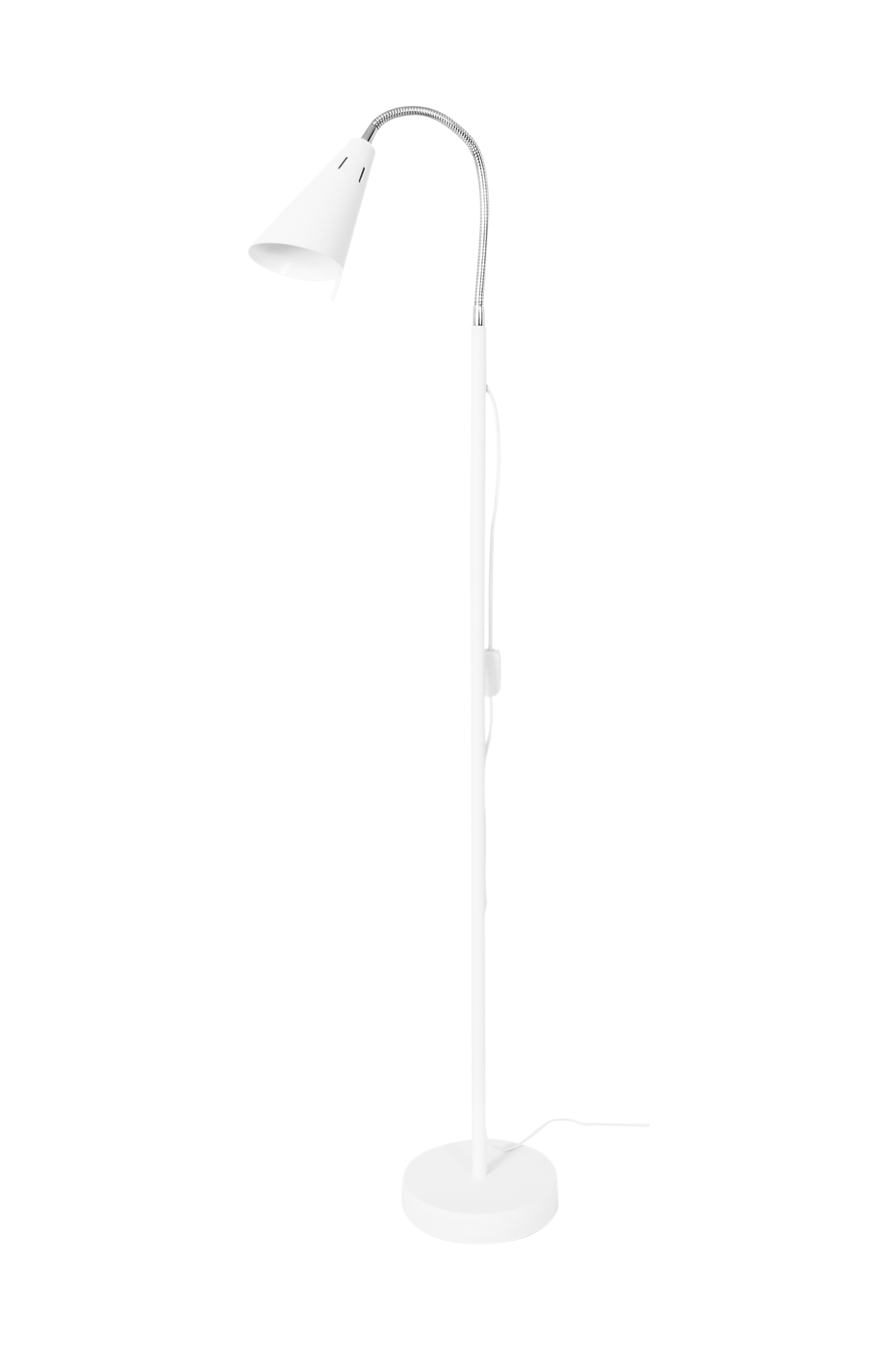 Tyylikäs, valkoinen lukulamppu sängyn viereen. Tukeva ja helppo ohjata valo haluttuun suuntaan.