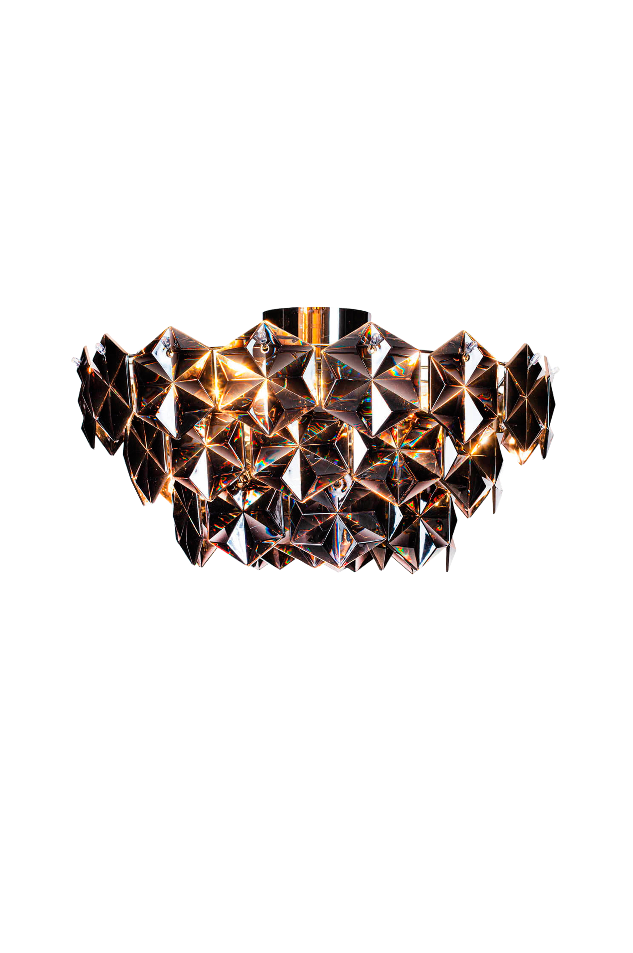 Monarque-kattoplafondi on kirkasta akryyliä ja siinä on krominväriset yksityiskohdat, mikä antaa huoneelle kiinnostavan ja eksklusiivisen ilmeen. Kattoplafondin halkaisija on 50 cm ja siinä on paikka kolmelle E27-lampunkannalla varustetulle valonlähteelle. Valaisimen korkeus on 28 cm. Enintään 40 W.