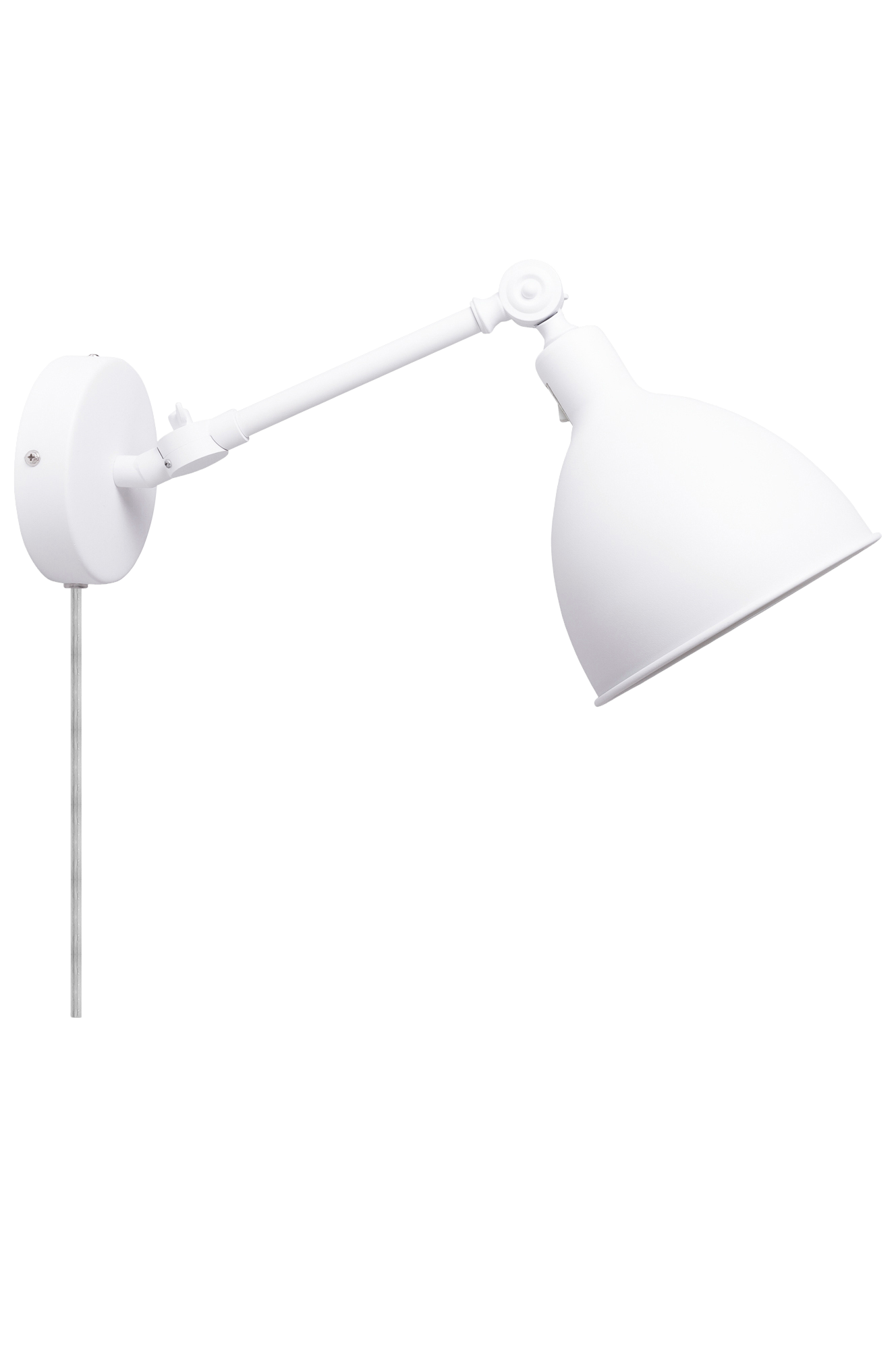 2 metrin johto. Virtakatkaisin varjostimen yläsivulla. Valaisin asennetaan seinään metallilevyn ja ruuvien avulla.