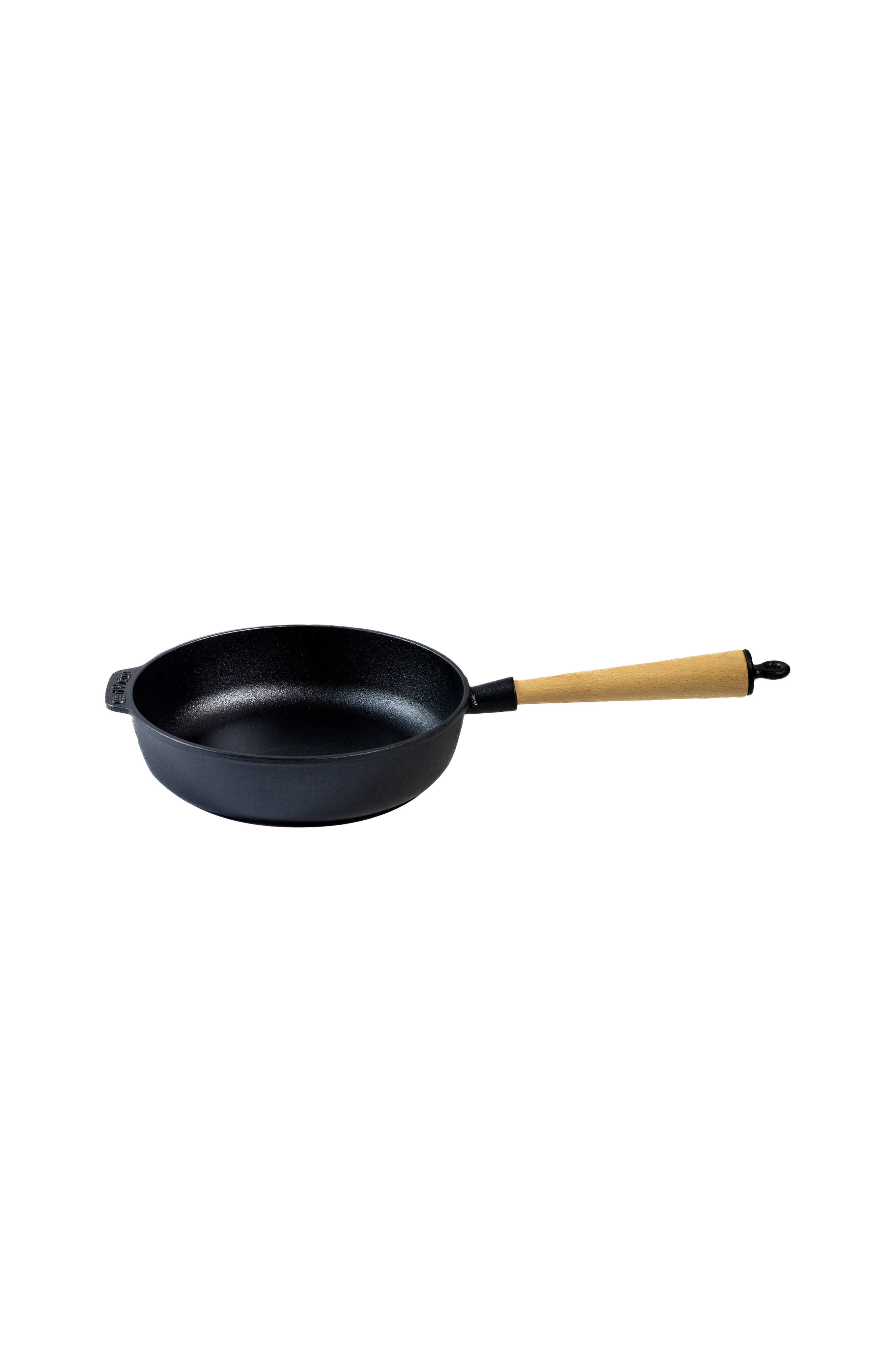 Carl Victorin valurautainen haudutuspannu, jossa pyökkikahva. Pannu jakaa lämmön erinomaisesti valuraudan hyvien lämpöominaisuuksien ansiosta, jolloin ruoka kypsyy tasaisesti. Carl Victorin valurautatuotteet on valmistettu tarkasti valvotusta, kierrätettävästä raudasta.