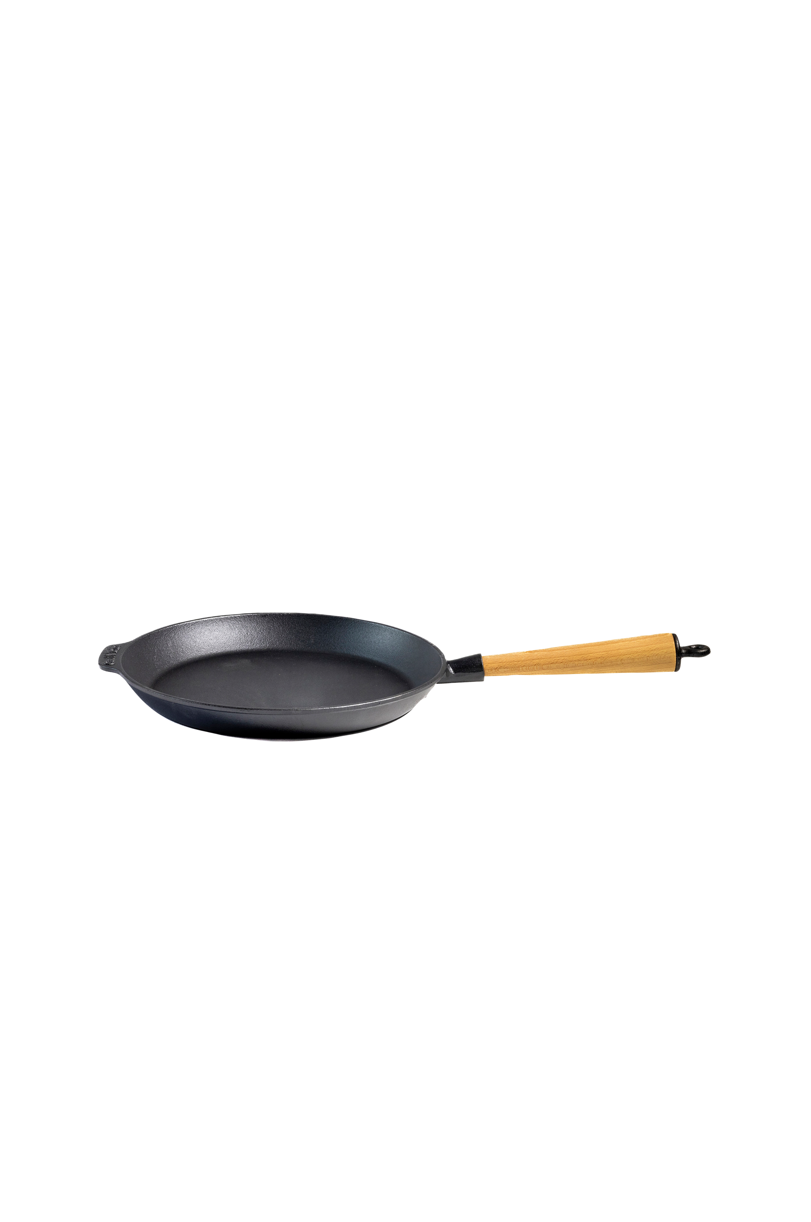 Carl Victorin valurautainen paistinpannu, jossa puukahva. Pannu jakaa lämmön erinomaisesti valuraudan hyvien lämpöominaisuuksien ansiosta, jolloin ruoka kypsyy tasaisesti. Carl Victorin valurautatuotteet on valmistettu tarkasti valvotusta, kierrätettävästä raudasta.