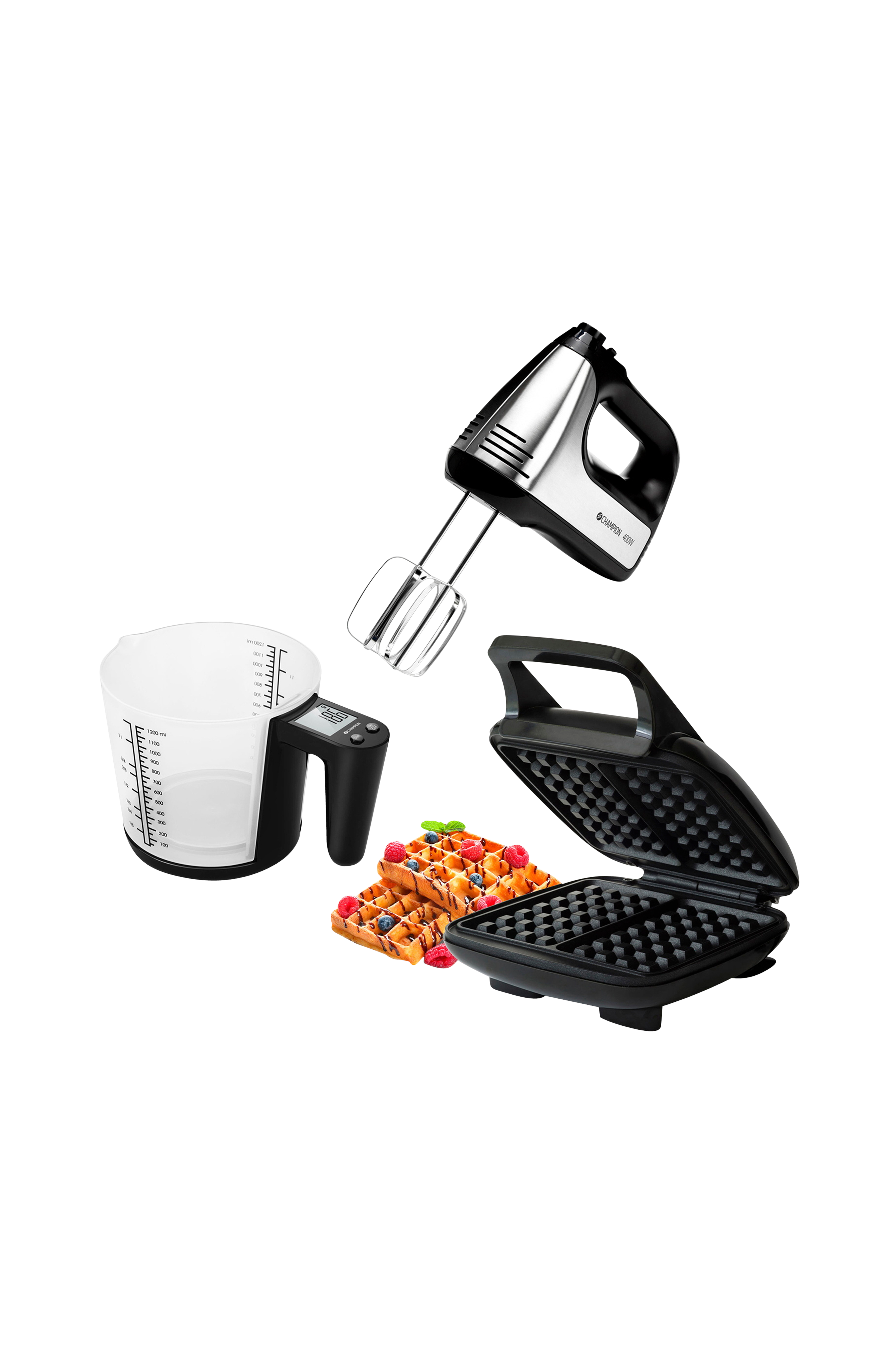 Champion Nordic Belgialainen vohvelirauta + sähkövatkain + mittakuppi