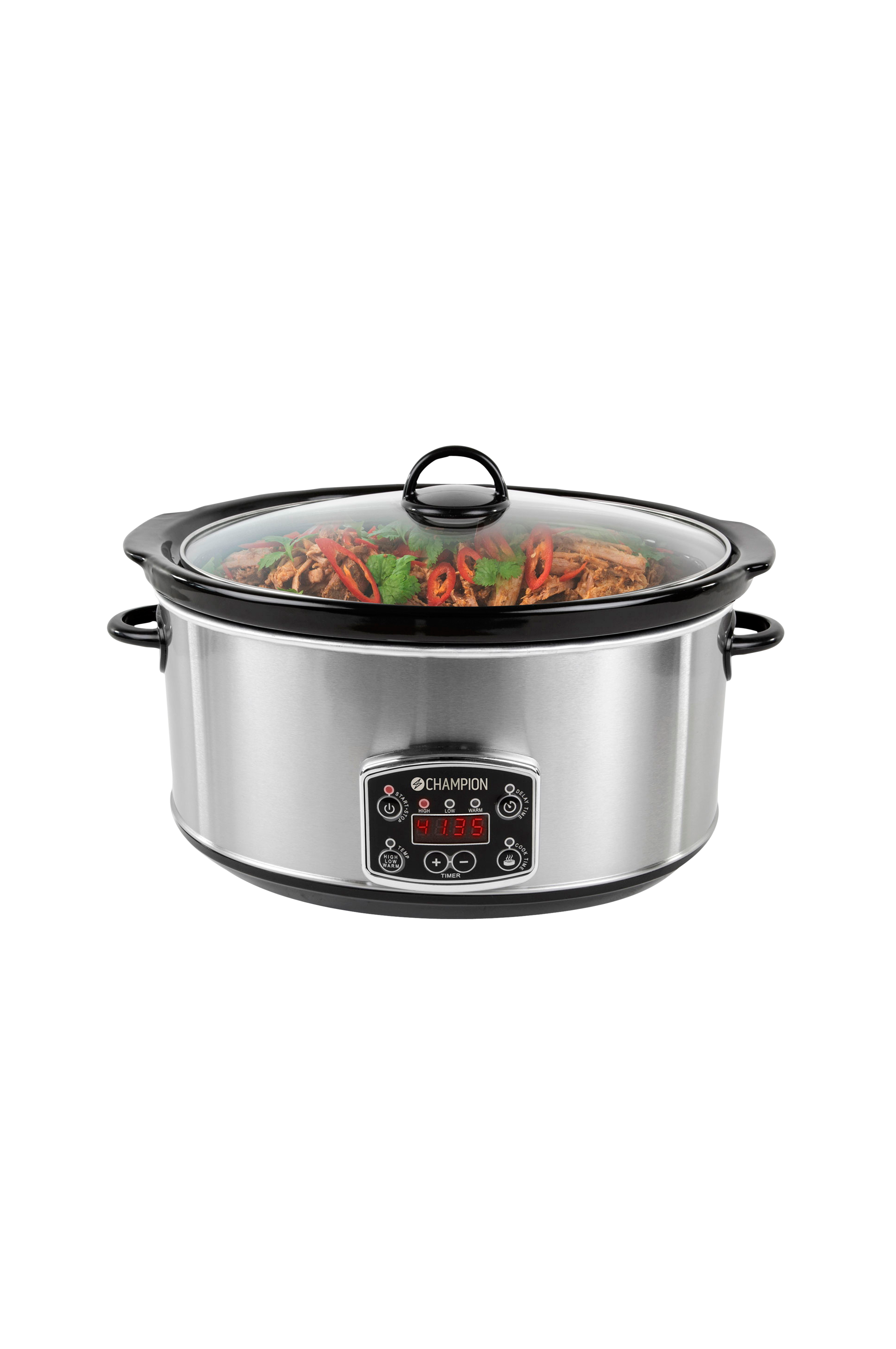 Ruoanlaittaminen haudutuspadalla on uskomattoman helppoa. Sinun ei tarvitse olla mestarikokki onnistuaksesi, kun apunasi on Champion CHSC210. Laita ainekset pataan, käynnistä lämpö ja anna haudutuspadan tehdä loput. Sillä aikaa voit keskittyä johonkin muuhun. Haudutuspadasssa on myös ohjelmoitava aloitusaika, mikä tarkoittaa, että voit päättää, moneltako ruoanlaitto alkaa.