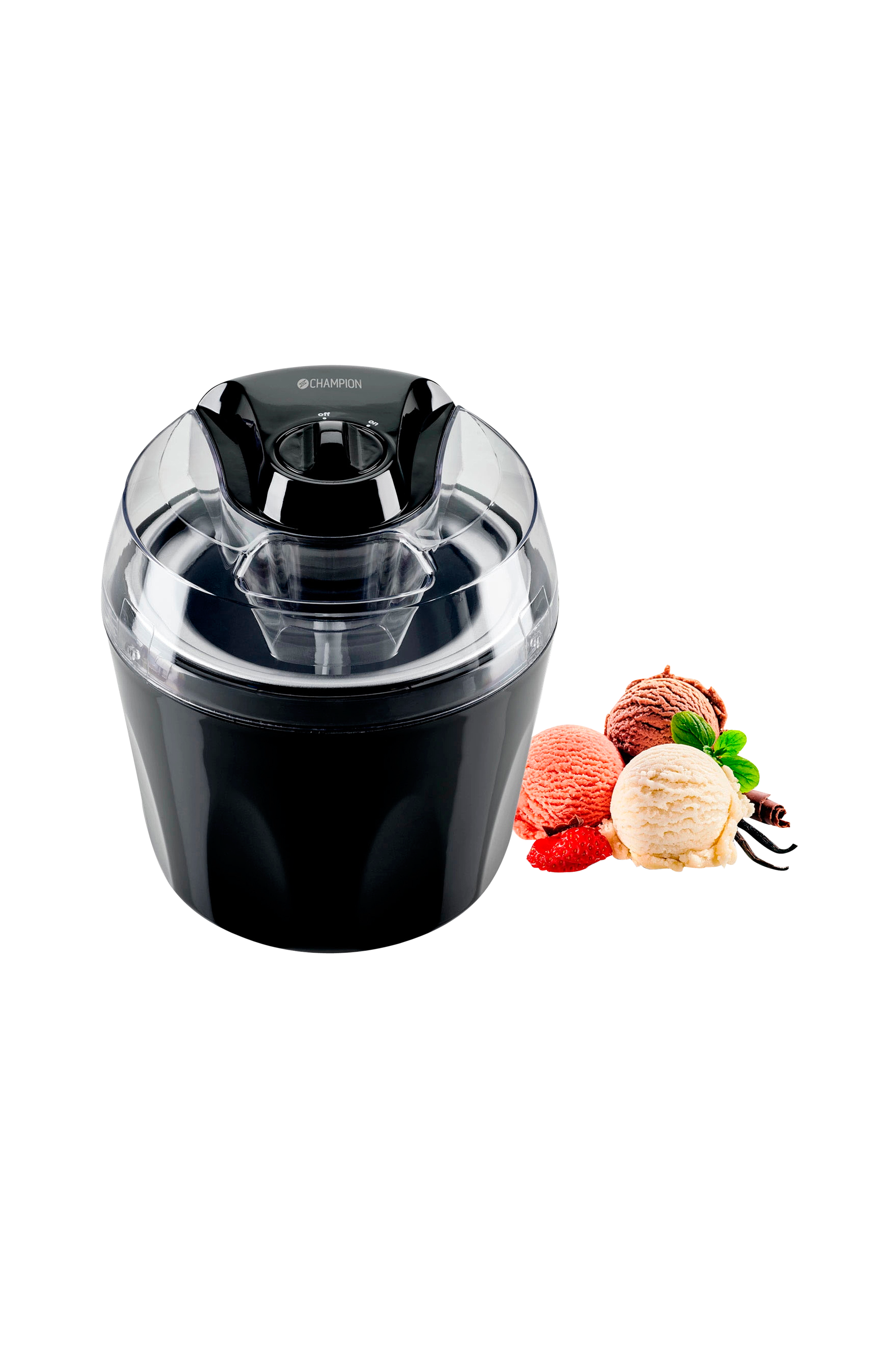 CHGM210-jäätelökoneessa on tilava 1,5 litran kulho ja läpinäkyvä kansi, jonka avulla voit helposti seurata prosessia nähdäksesi, milloin jäätelön koostumus on juuri oikea. Kulho esijäädytetään pakastimessa vähintään 8 tuntia ennen jäätelön valmistusta. Esijäädytyksen ansiosta jäätelö valmistuu hetkessä koneen käynnistyttyä. Champion-jäätelökoneella valmistat jäätelön lisäksi sorbettia ja jäädytettyä jugurttia - vain mielikuvitus on rajana.