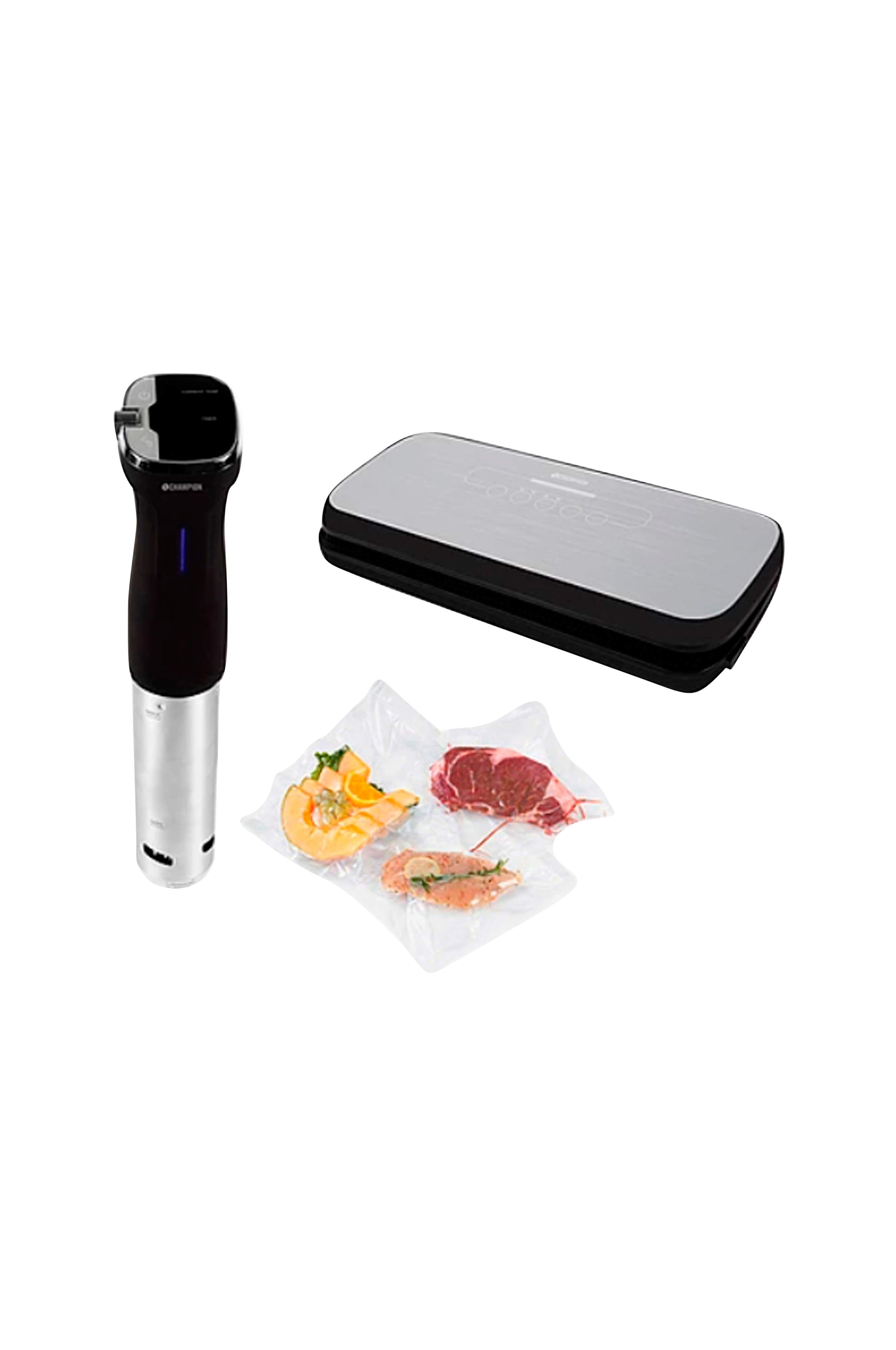 Täydellinen pakkaus sinulle, joka haluat kokeilla Sous Vide -ruoanlaittoa. Pakkauksessa on Champion Sous Vide Precision -sirkulaattori, Champion-vakuumipakkaaja ja Champion-vakuumipussirulla. Kaikki mitä tarvitset tullaksesi Sous Vide -taitajaksi!