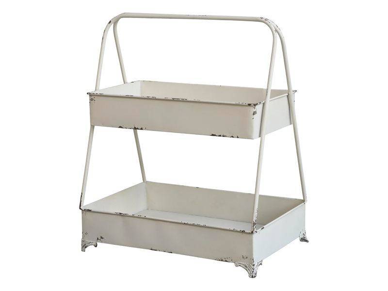 Kermanvärisessä kaksikerroksisessa hyllykössä on antiikkiviimeistely, ja se sopii hyvin keittiöön yrtti- ja maustehyllyköksi.