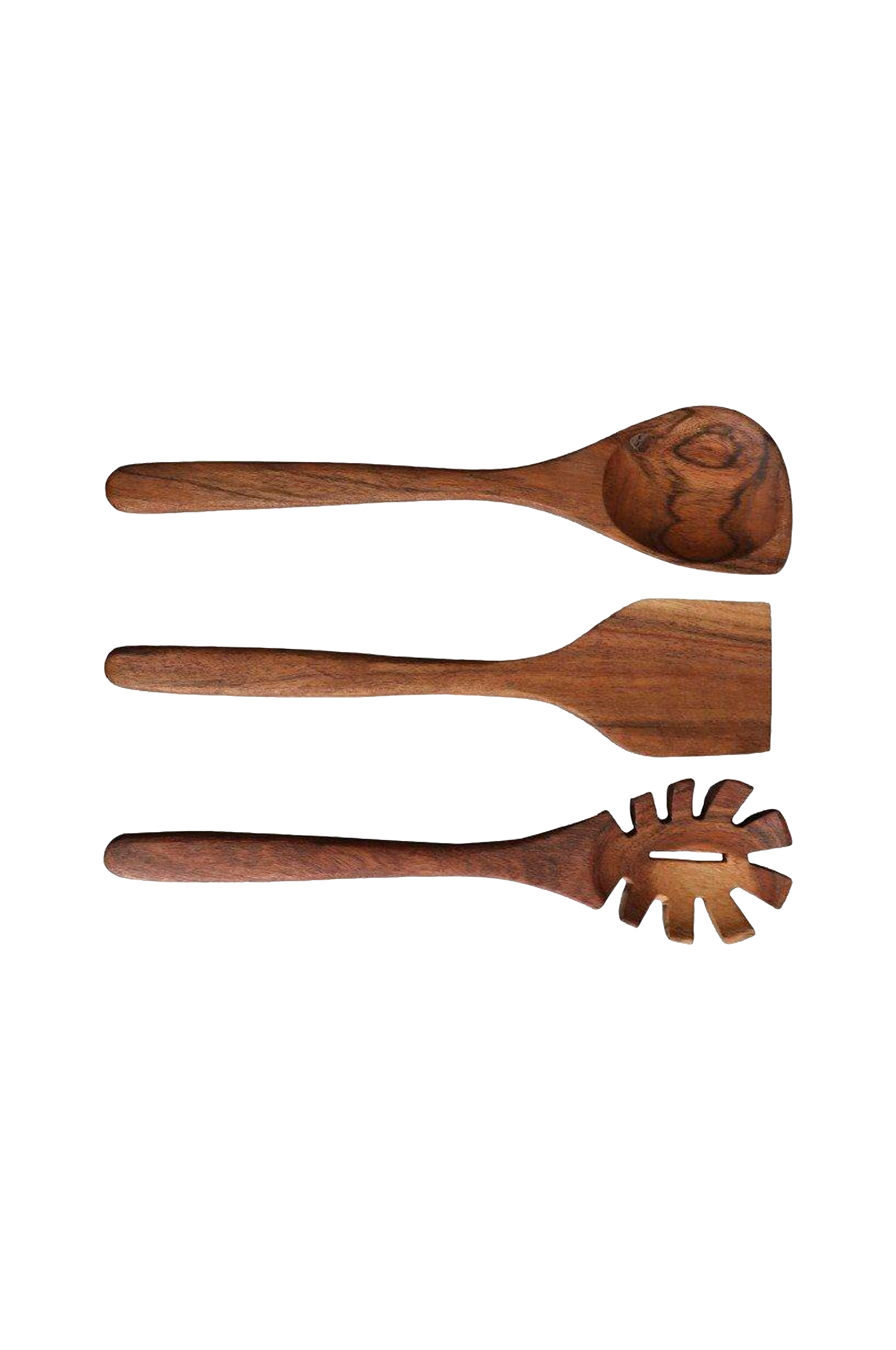 Tyylikkäät akasiapuiset keittiövälineet, 3 erilaista.
