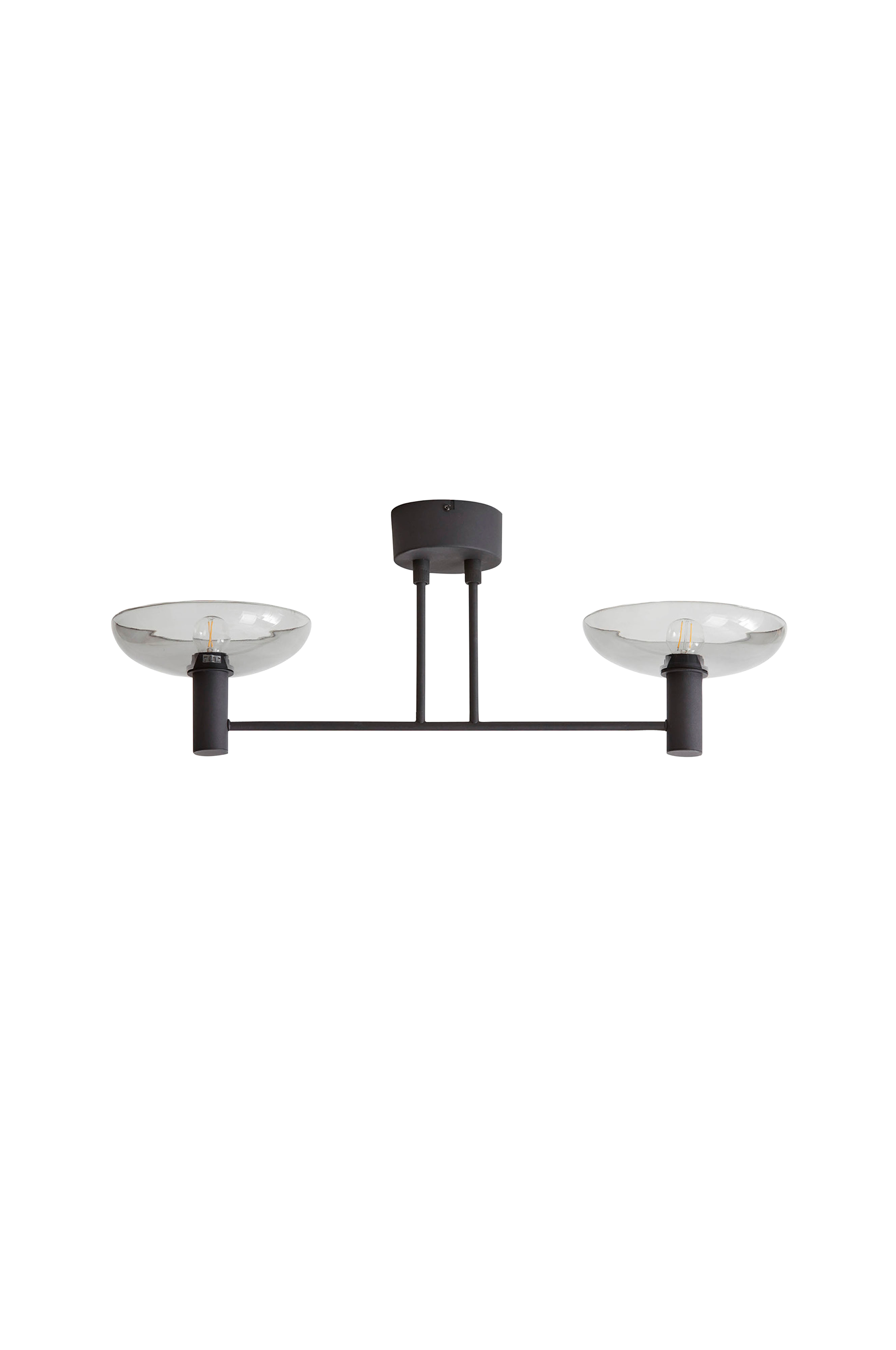 UFO Long -plafondi on en moderni kattoplafondi, joka tuo uutta ilmettä kodin sisustukseen. Musta väri ja kaksi savunväristä lasikupua luovat harmonisen tyylikkään vaikutelman. Valaisin ottaa paikkansa ja antaa huoneelle kauniin ilmeen.