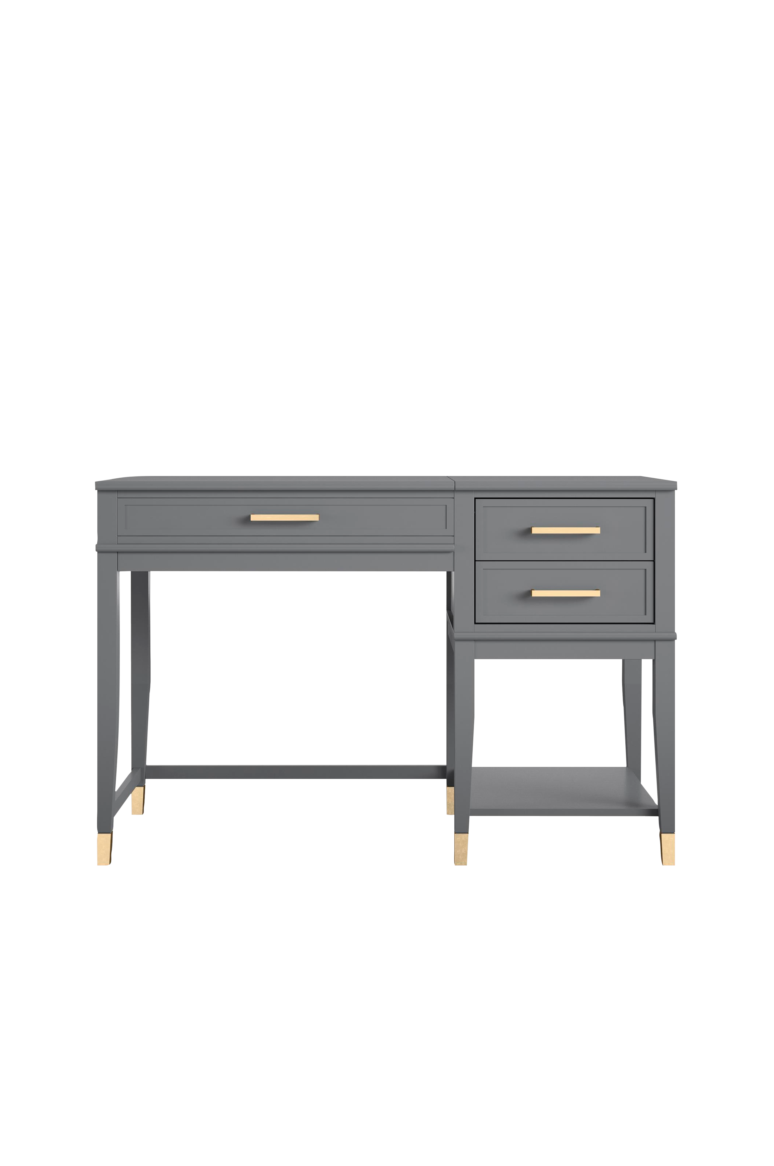 Työskentele tyylikkäästi CosmoLiving by Cosmopolitanin nostettavan ja laskettavan Westerleigh Lift Desk -pöydän ääressä. Pöydässä on trendikkäät kullanväriset yksityiskohdat ja kaksi tilavaa laatikkoa. Parasta on, että pöytälevyä voi nostaa, joten voit työskennellä sekä istuen että seisten. Loistokkaasta kirjoituspöydästä on saatavana useita eri värejä.
