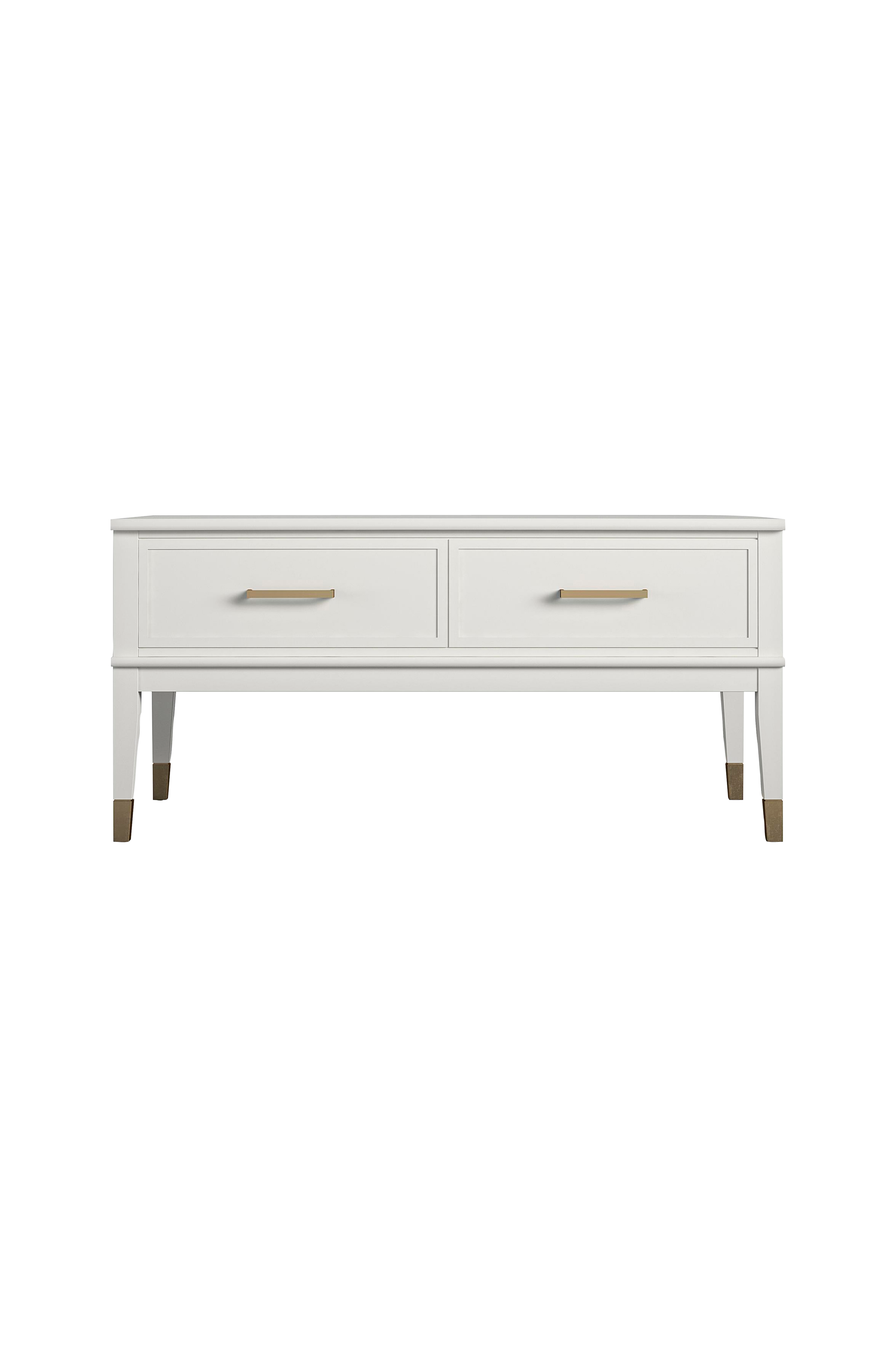 Päivitä kotisi CosmoLiving by Cosmopolitan Westerleigh Lift-Top Coffee Table -sohvapöydällä. Pöytälevy kätkee allensa säilytystilaa! Sohvapöydässä on trendikkäät kullanväriset vetimet ja jalat. Saatavana valkoisena, grafiitinharmaana ja mattamustana. Täydellinen pieniin tiloihin!