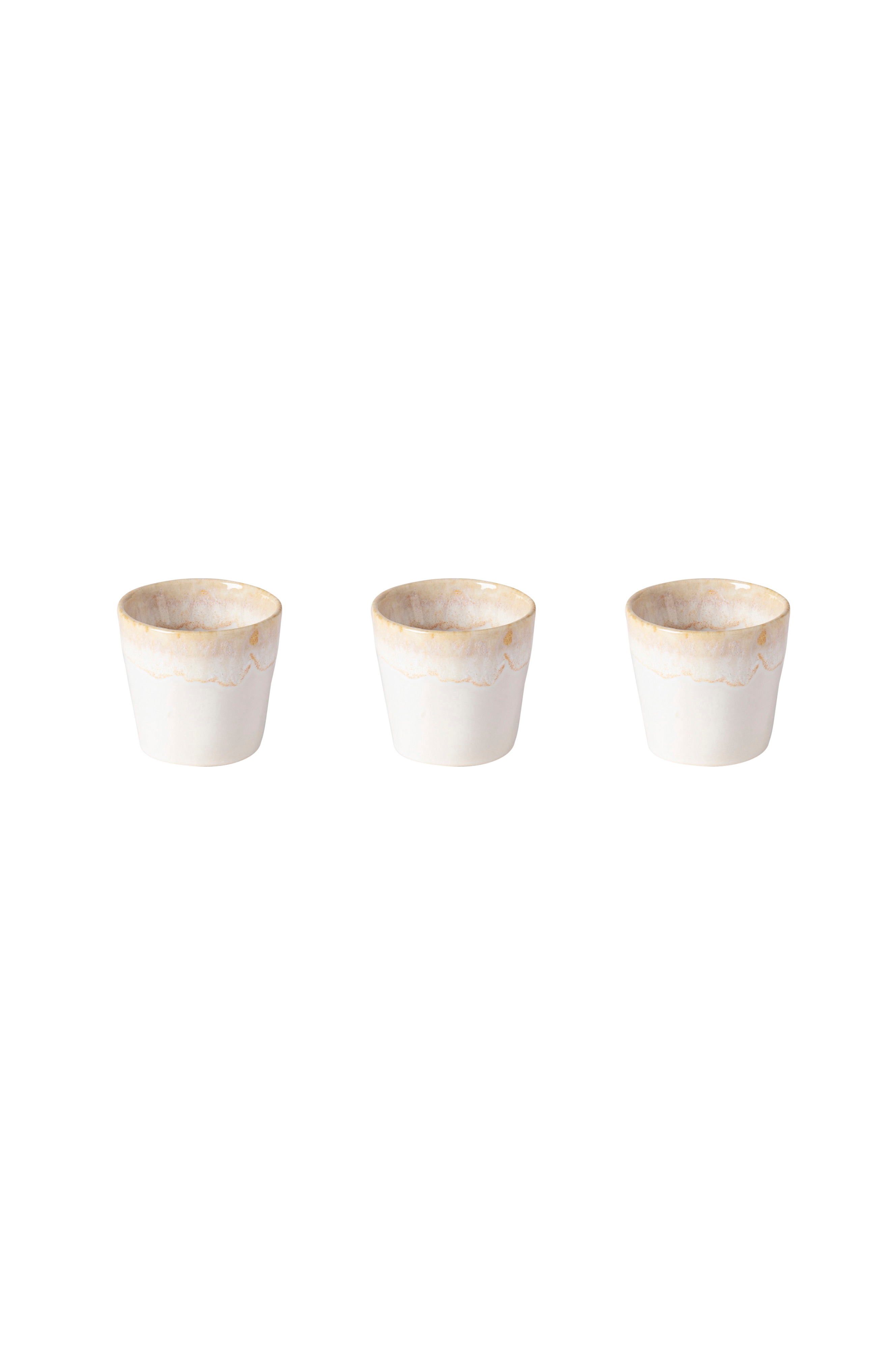 Vackert set med 3st espressomuggar från portugisiska costa nova i serien grespresso. Tillverkad av stengods med stenhård glasering i portugal. Godkänd för både diskmaskin och micro. Finns i bred serie med muggar, espressomuggar och lattemuggar.