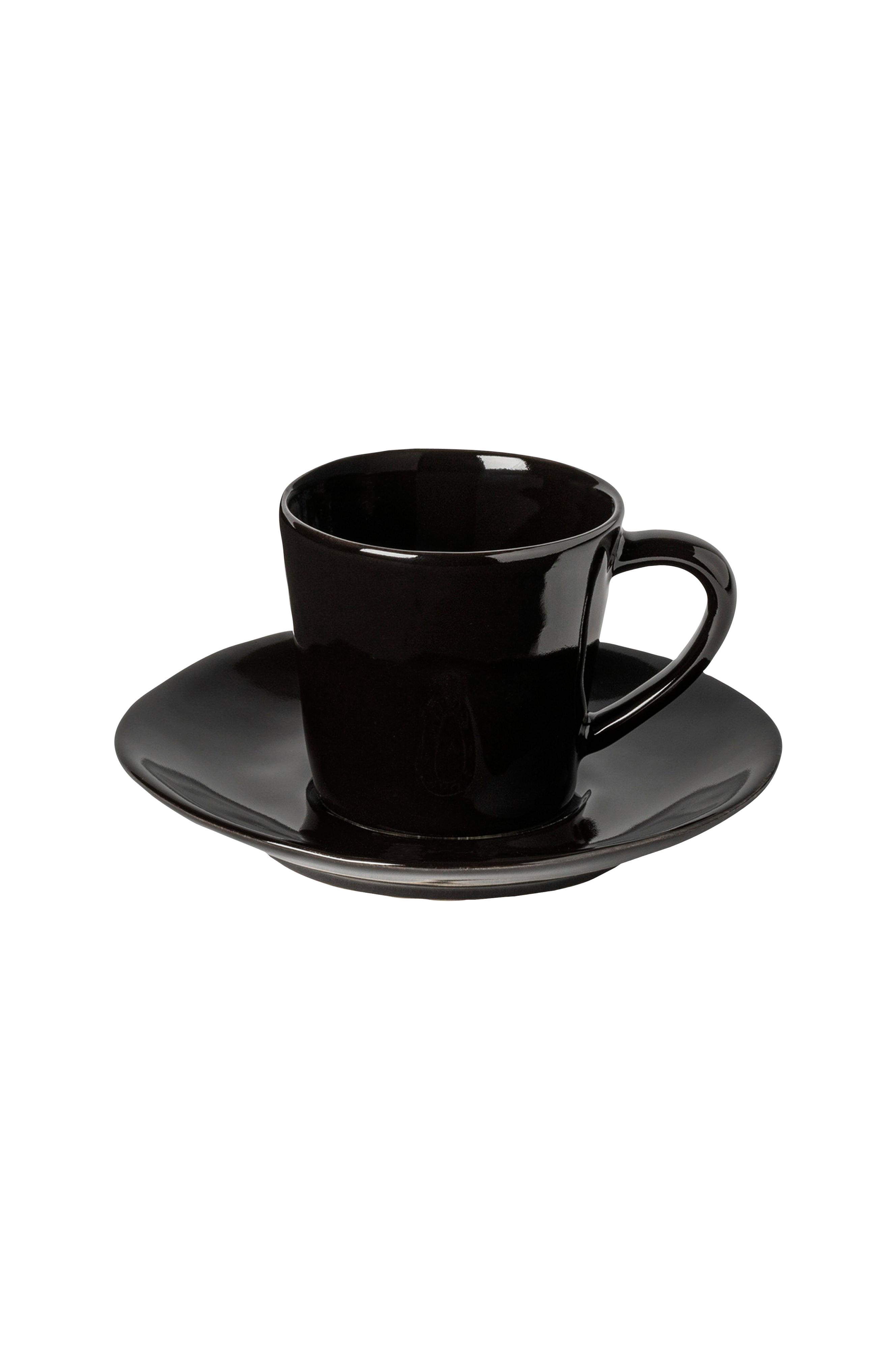 Vacker kopp med fat i serien nova black från portugisiska costa nova! Kopp/fat är tillverkad för hand av stengods i vackra portugal. Kopp/fat är godkänd för frys, diskmaskin och micro. Då alla produkter är tillverkade för hand, det gör att varje produkt är unik med små skiftningar i glasering och färg.