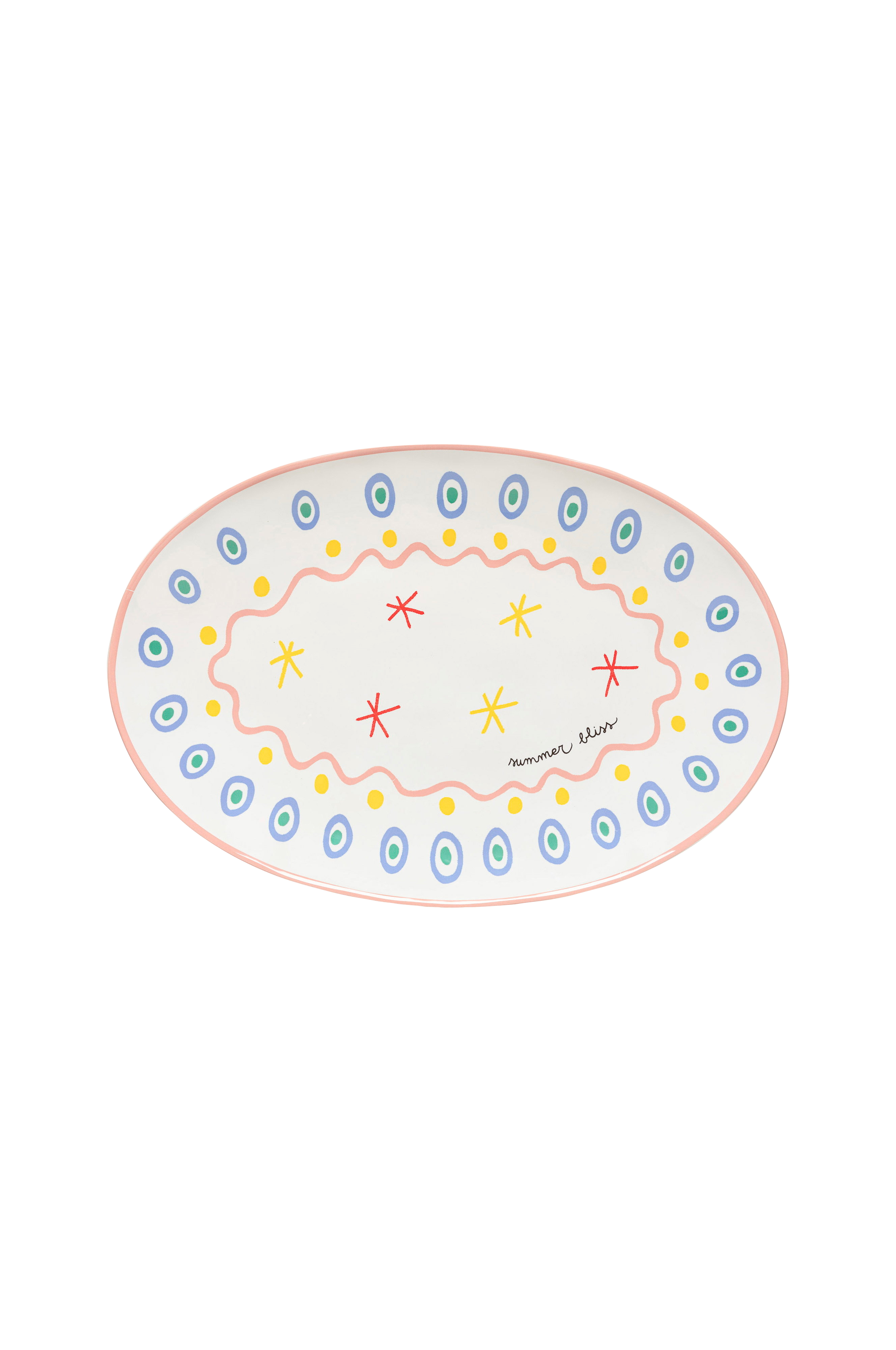 Somrigt fat i serien summer blizz från portugisiska costa nova! Fatet är tillverkad för hand av stengods i vackra portugal. Fatet är godkänd för frys, diskmaskin och micro. Då alla tallrikar är tillverkade för hand, det gör att varje produkt är unik med små skiftningar i glasering och färg. i summer blizz serien finns allt från tallrik till mugg och kanna! Välj och vraka i denna vackra serie insperad från den italienska sommaren.