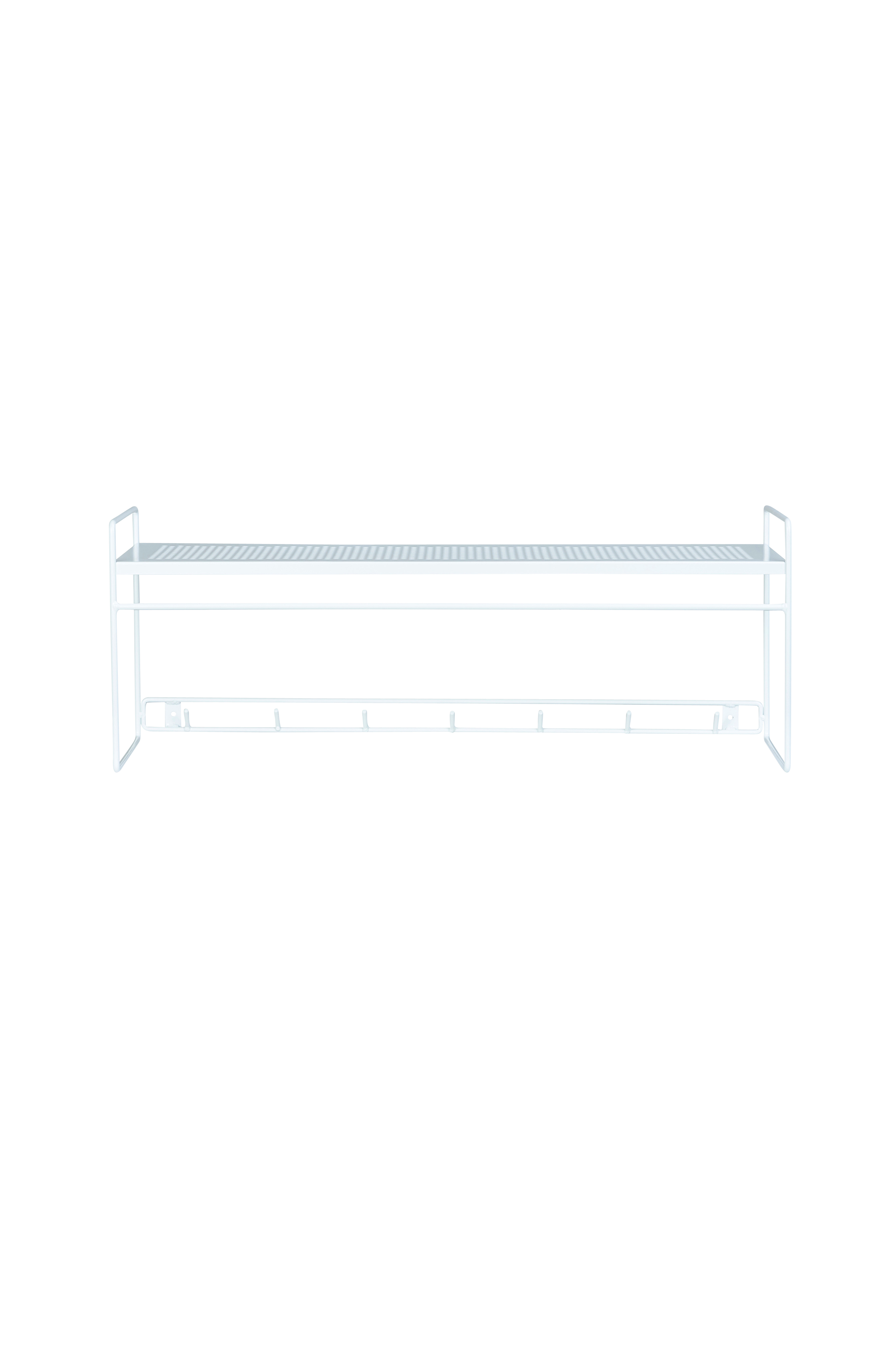 Alex on tyylikäs metallinen hattuhylly. Varustettu koukuilla sekä hyllytasolla. Täydellinen eteiseen tai makuuhuoneeseen. Yhdistä saman sarjan kenkähyllyyn.