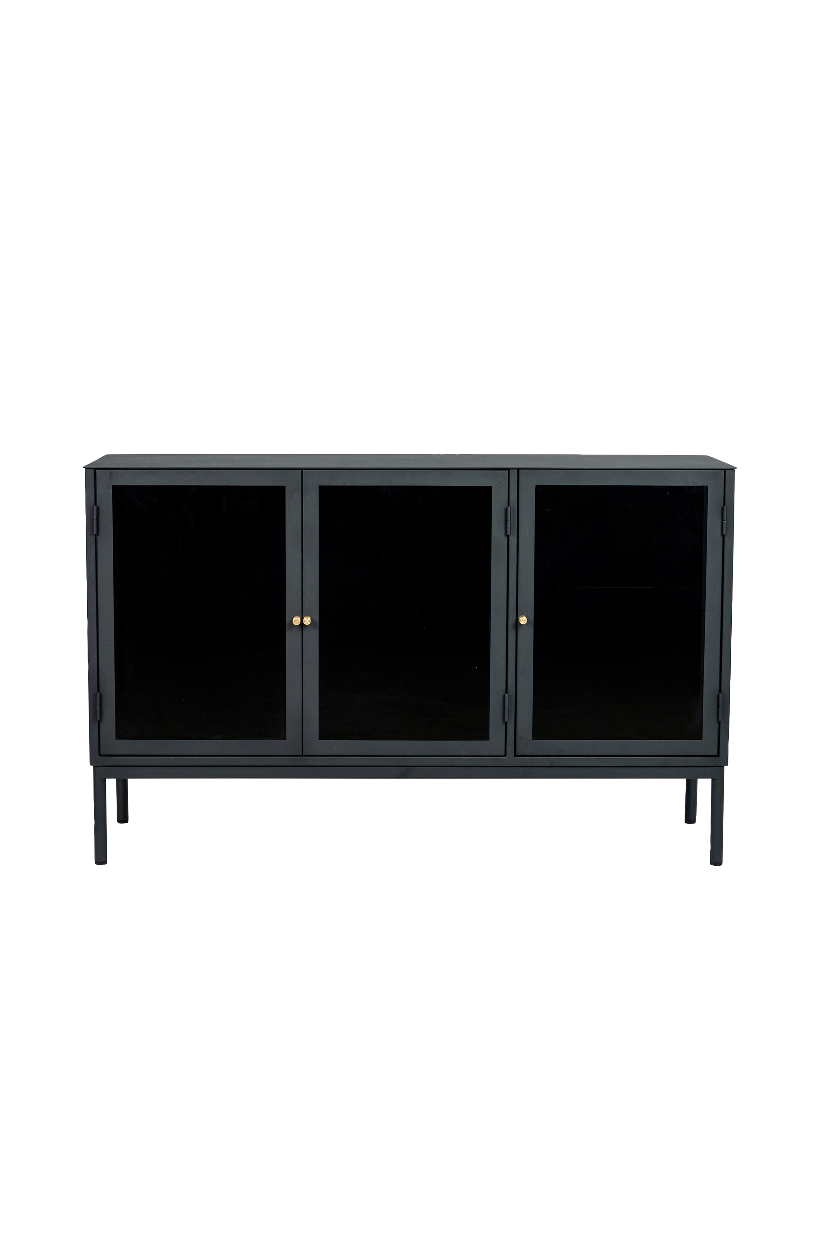 Sivupöytä moderniin teolliseen tyyliin. Sivupöydän sivuilla ja ovissa on lasia, joka antaa ihanaa valoa sisään. Sivupöydän mitat ovat 125x80x38 cm.