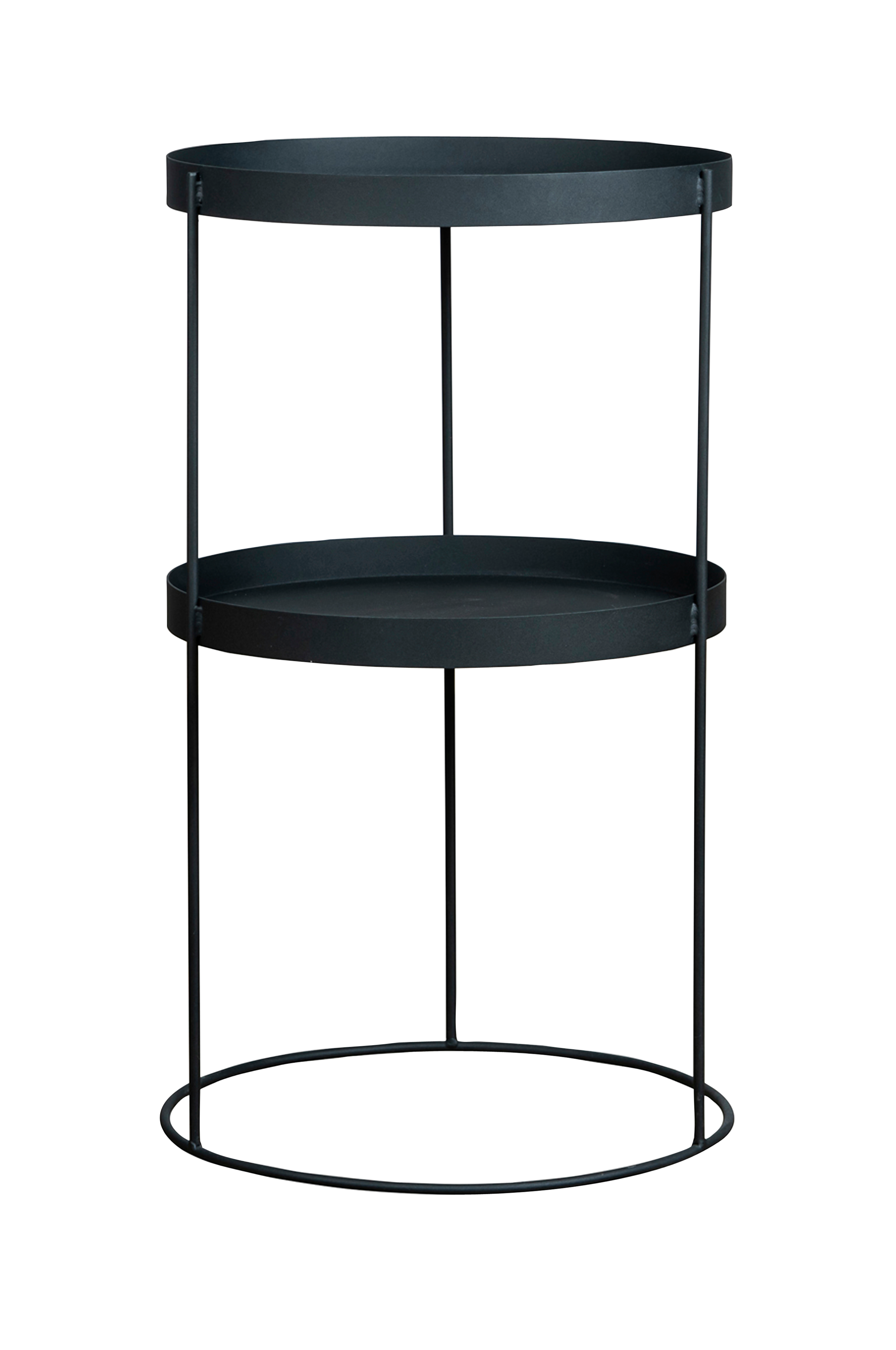 Pyöreä sivupöytä, jossa kaksi hyllytasoa. Täydellinen lisäpöydäksi sohvan viereen tai vaikkapa yöpöydäksi.