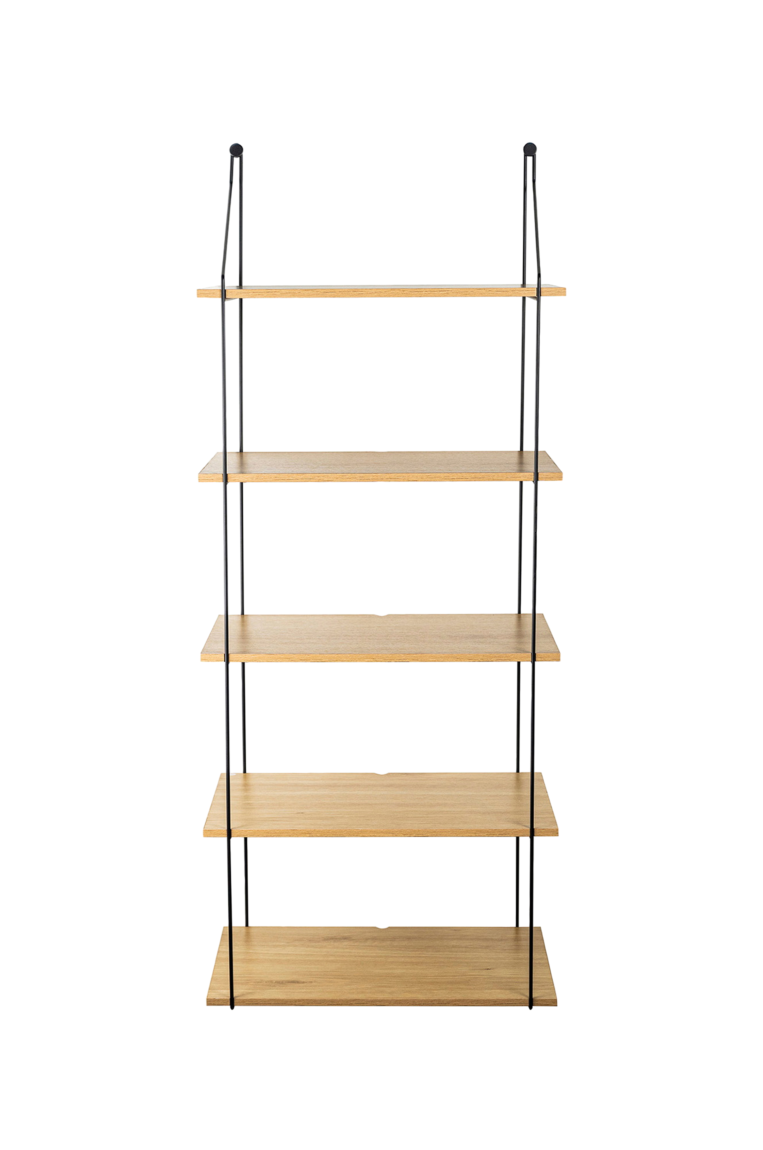 Seinähylly, jossa on 5 melamiinihyllyä ja metallinen konsoli, hylly on 40 cm leveä, 26 cm syvä ja 98 cm korkea.