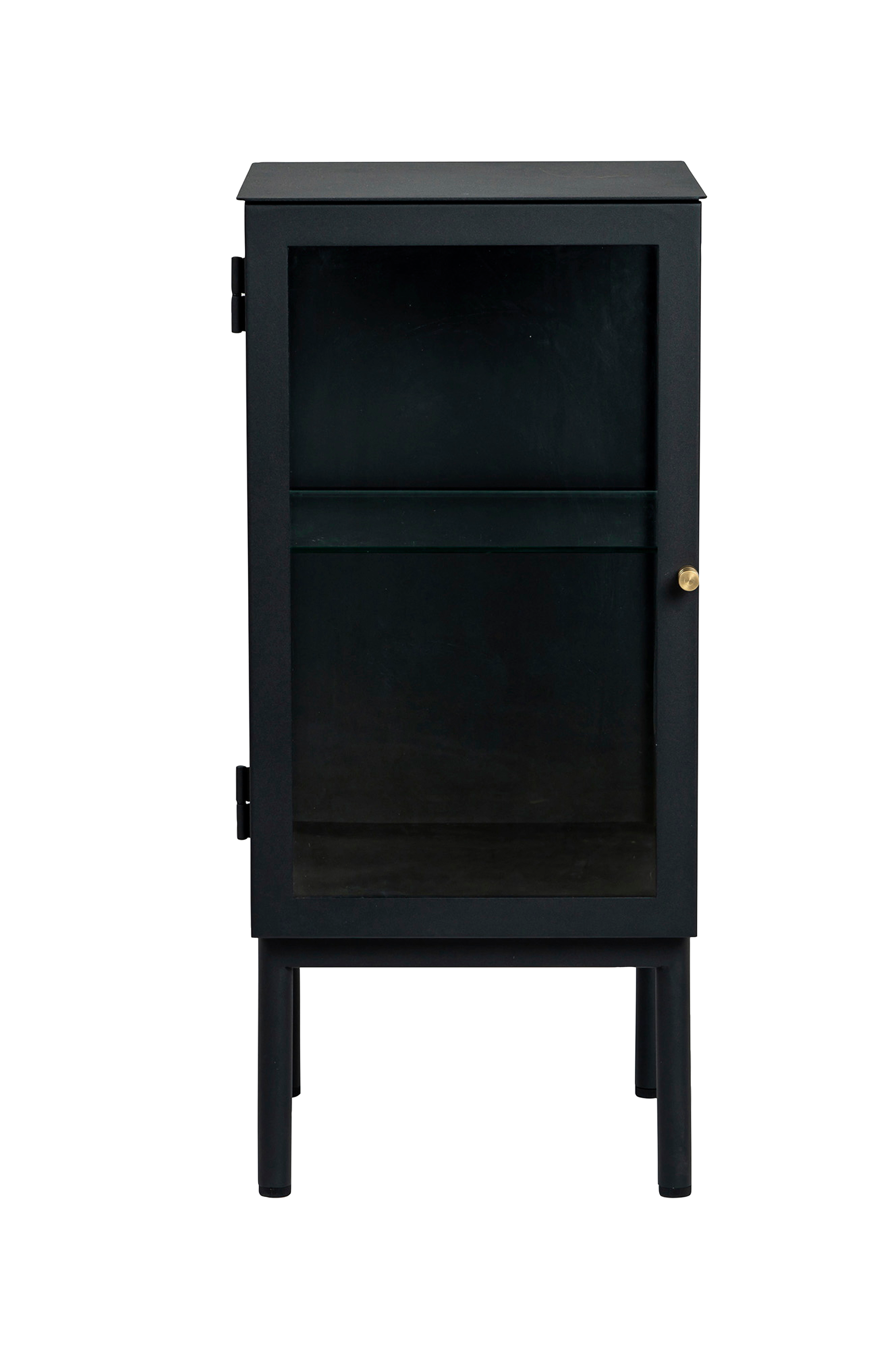 Moderniin teolliseen tyyliin suunniteltu sänkypöytä. Sivuissa ja ovessa on lasia, joka antaa ihanaa valoa sisään. Mukana on säädettävä hylly. Sänkypöydän korkeus on 75 cm, leveys 40 cm ja syvyys 33 cm.