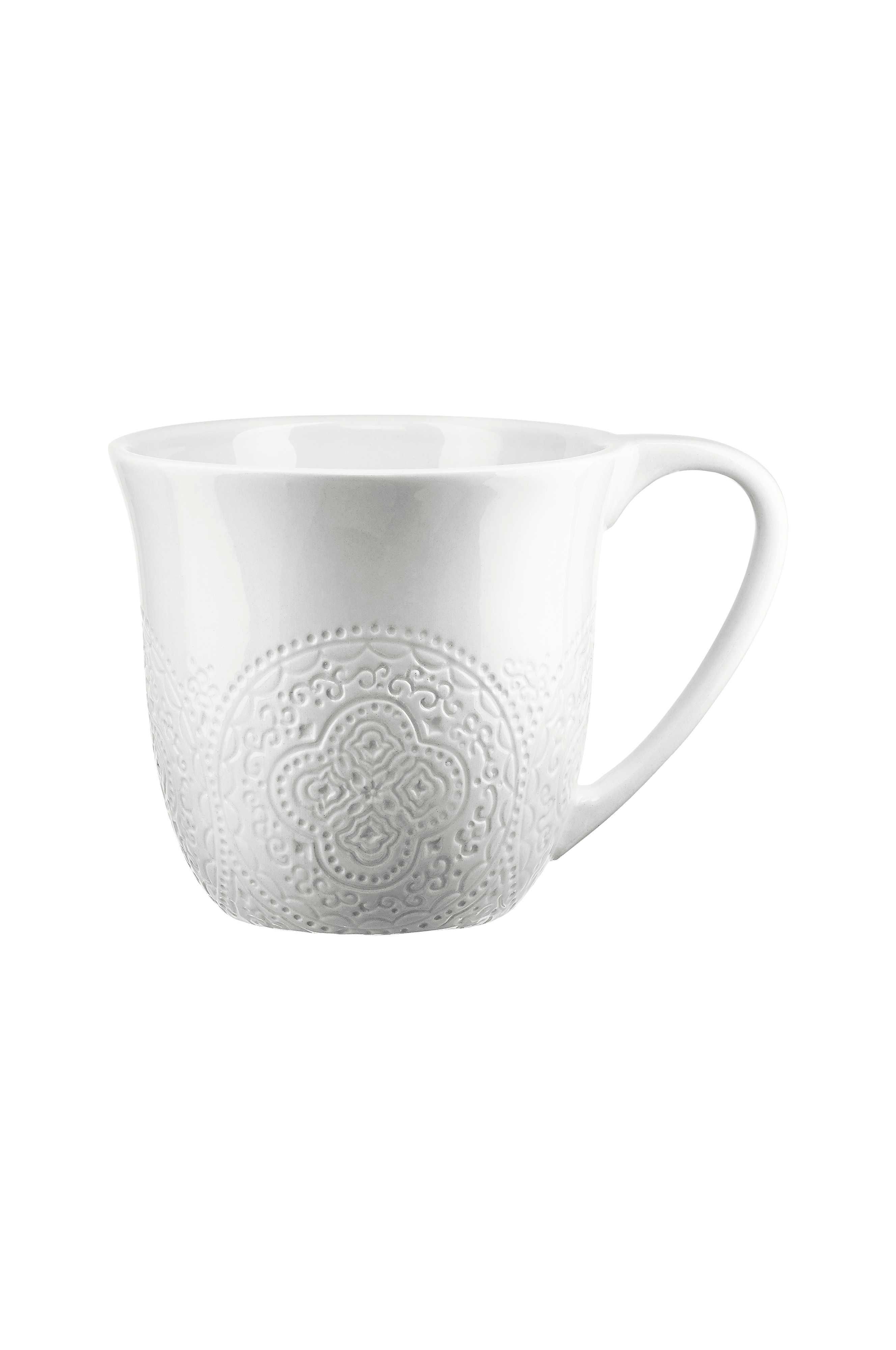 Kestävästä kivitavarasta valmistettu muki, jossa kaunis reliefikuvio. Sopii erinomaisesti kahville tai lämpimälle kaakaolle. Vetoisuus 2,5 dl. Kestää mikroaaltouunin, uunin ja astianpesukoneen. Suunnittelija Marita Lord.