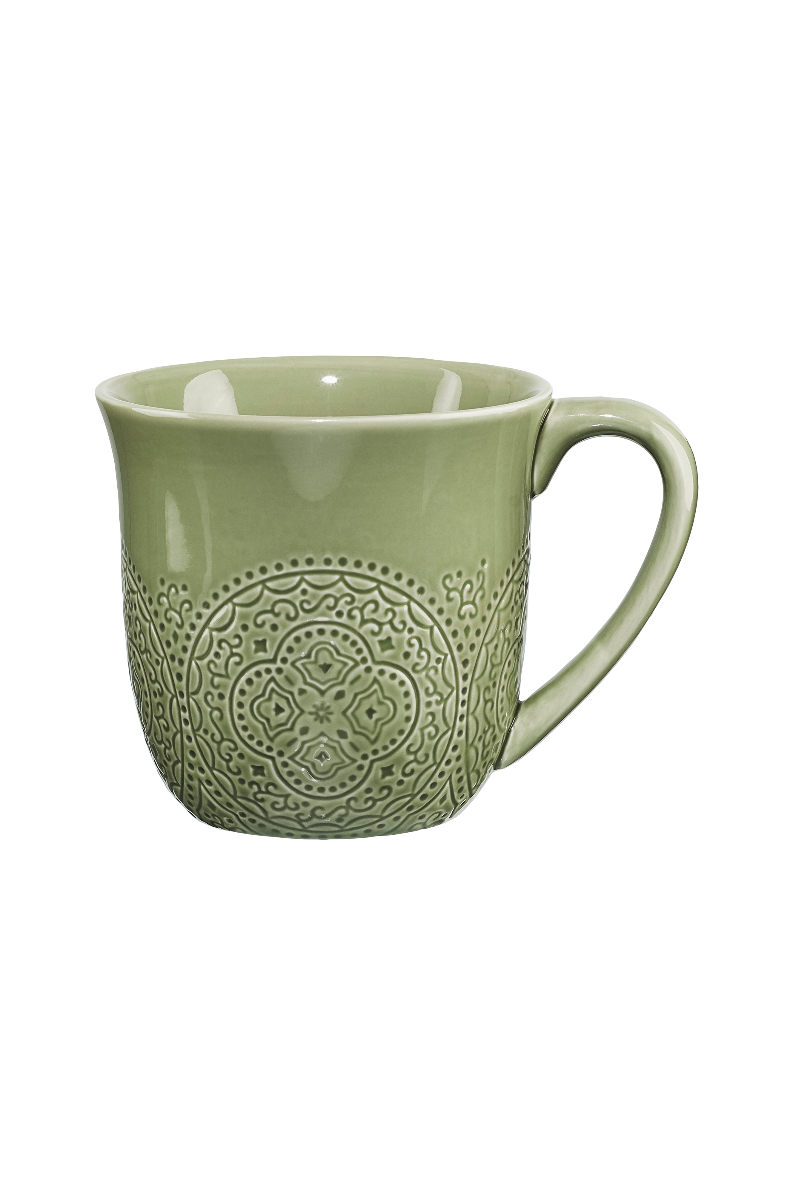 Kestävästä kivitavarasta valmistettu muki, jossa kaunis reliefikuvio. Sopii erinomaisesti kahville tai lämpimälle kaakaolle. Vetoisuus 2,5 dl. Kestää mikroaaltouunin, uunin ja astianpesukoneen. Suunnittelija Marita Lord.