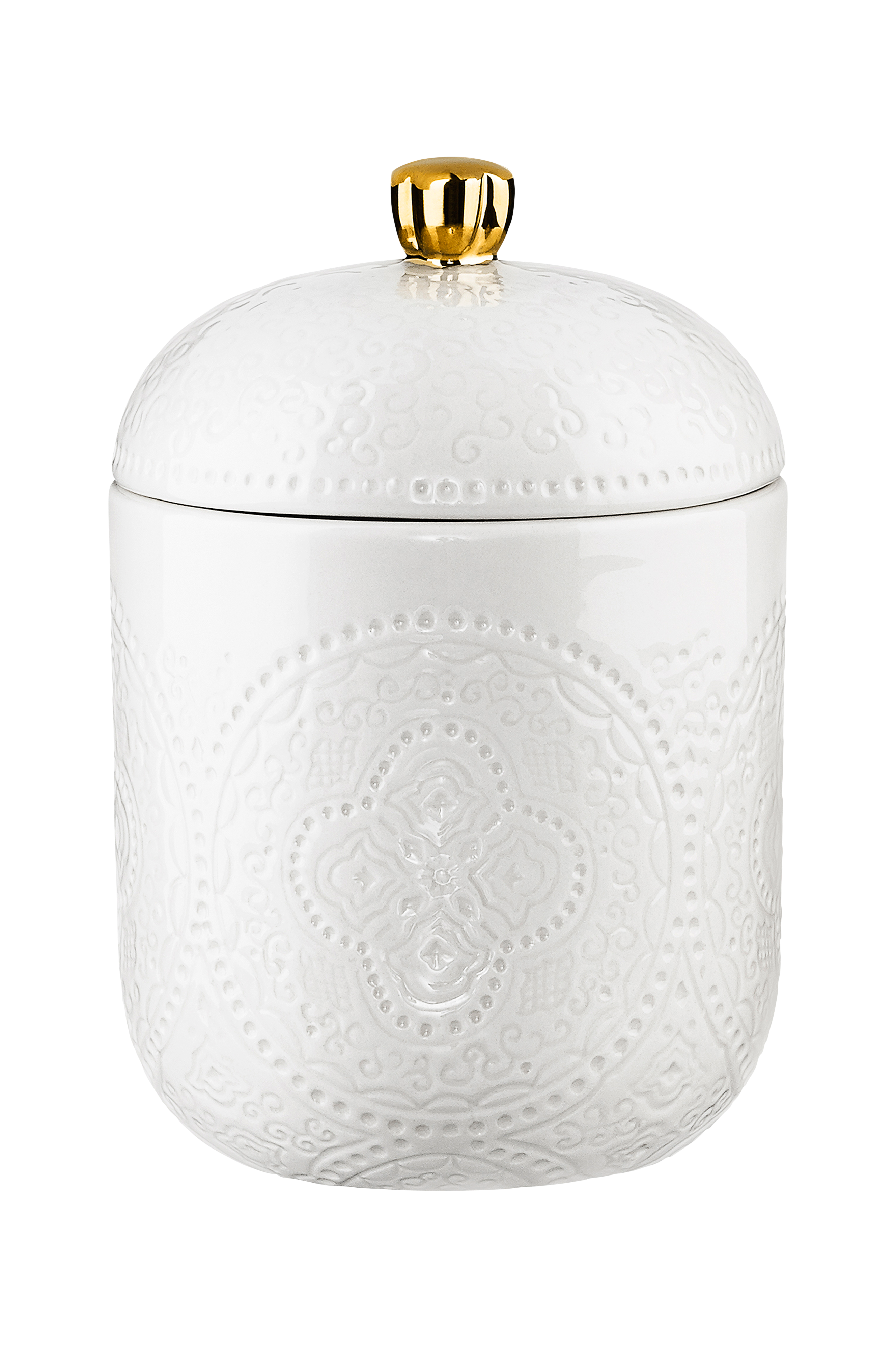 Keramiikkapurkki, jossa kaunis reliefikuvio. Tiivis kansi. Kestävää kivitavaraa. Kestää konepesun. Suunnittelija Marita Lord.