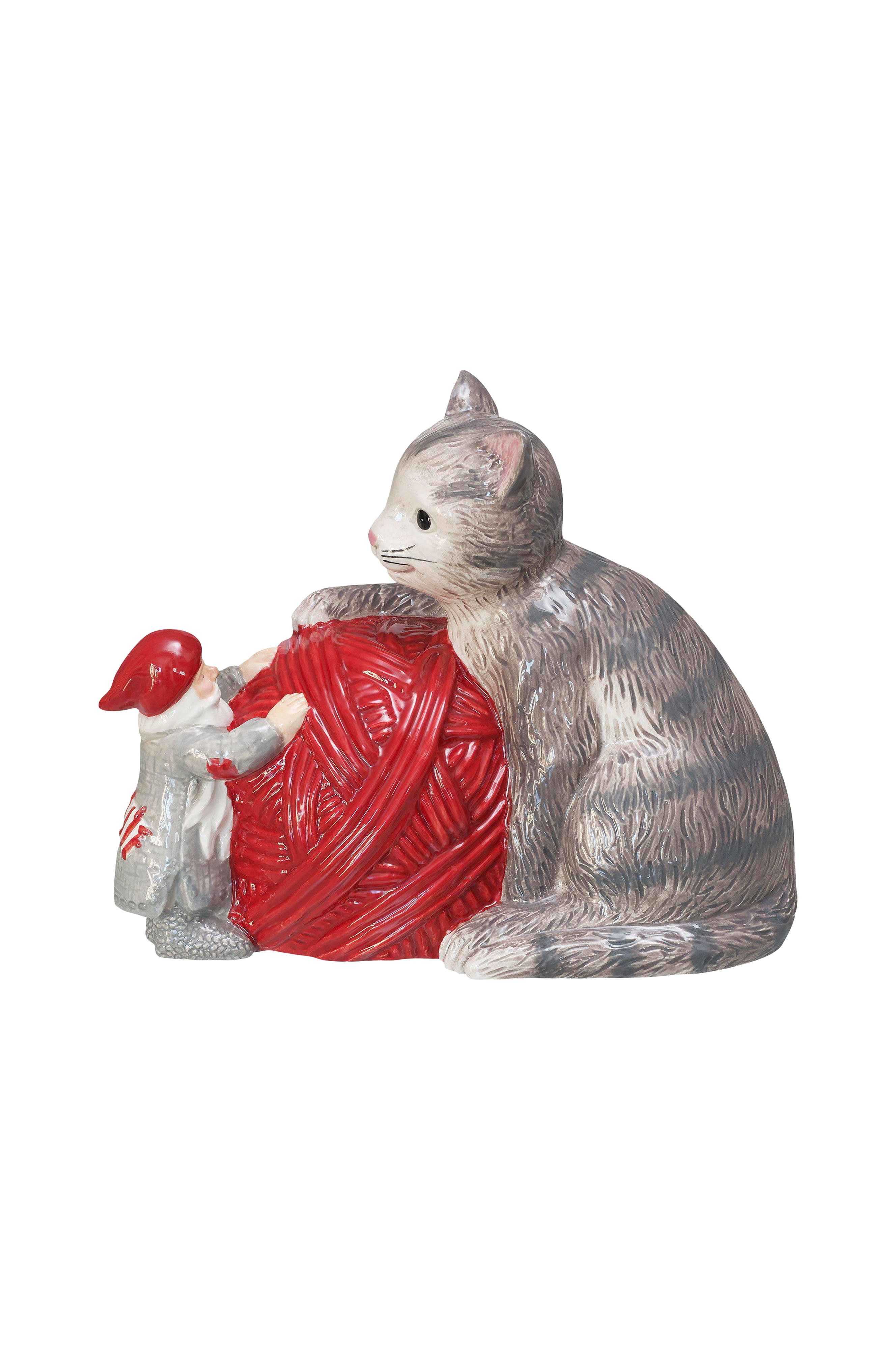 Käsinmaalattu keraaminen joulupukin kissa. Sarja raggsock, jossa on yksityiskohtia vanhasta ruotsalaisesta neuleesta. Suunnittelu marita lord