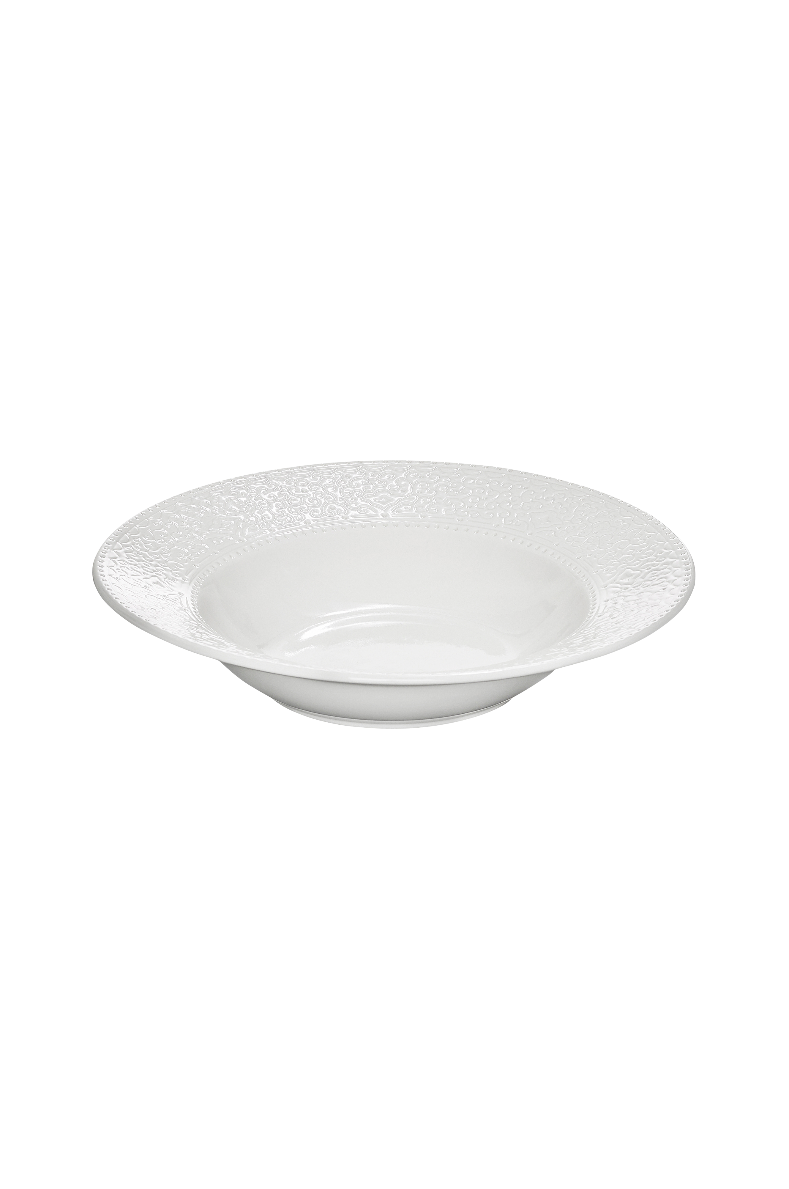 Kestävästä kivitavarasta valmistettu syvä lautanen, jossa kaunis reliefikuvio. Sopii erinomaisesti pastalautaseksi. Kestää mikroaaltouunin, uunin ja astianpesukoneen. Suunnittelija Marita Lord.
