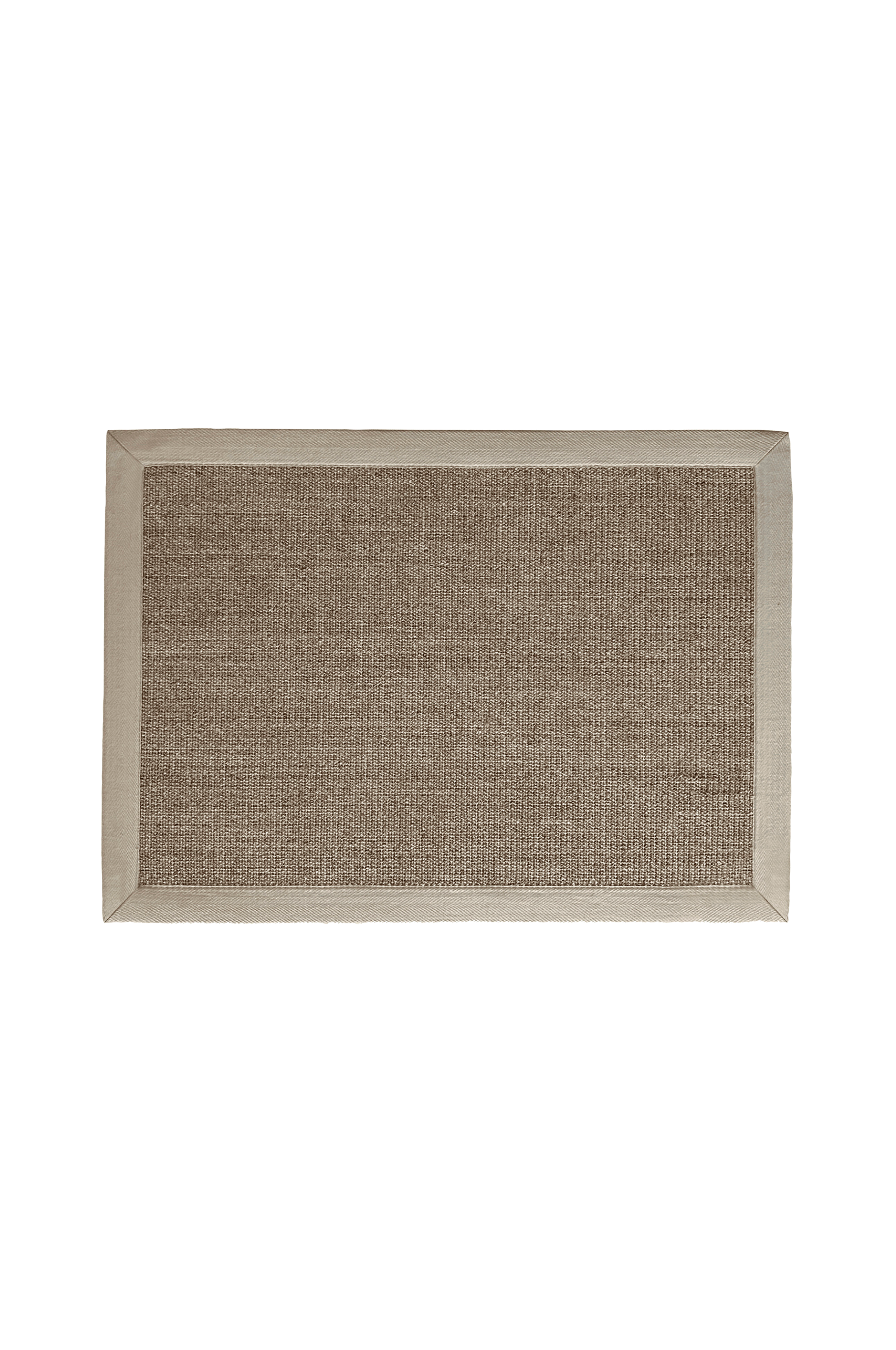 Kestävä ovimatto juuttia ja sisalia. Reunayksityiskohta. Takaosa luonnonkumia, joka pitää maton napakasti paikoillaan lattialla.