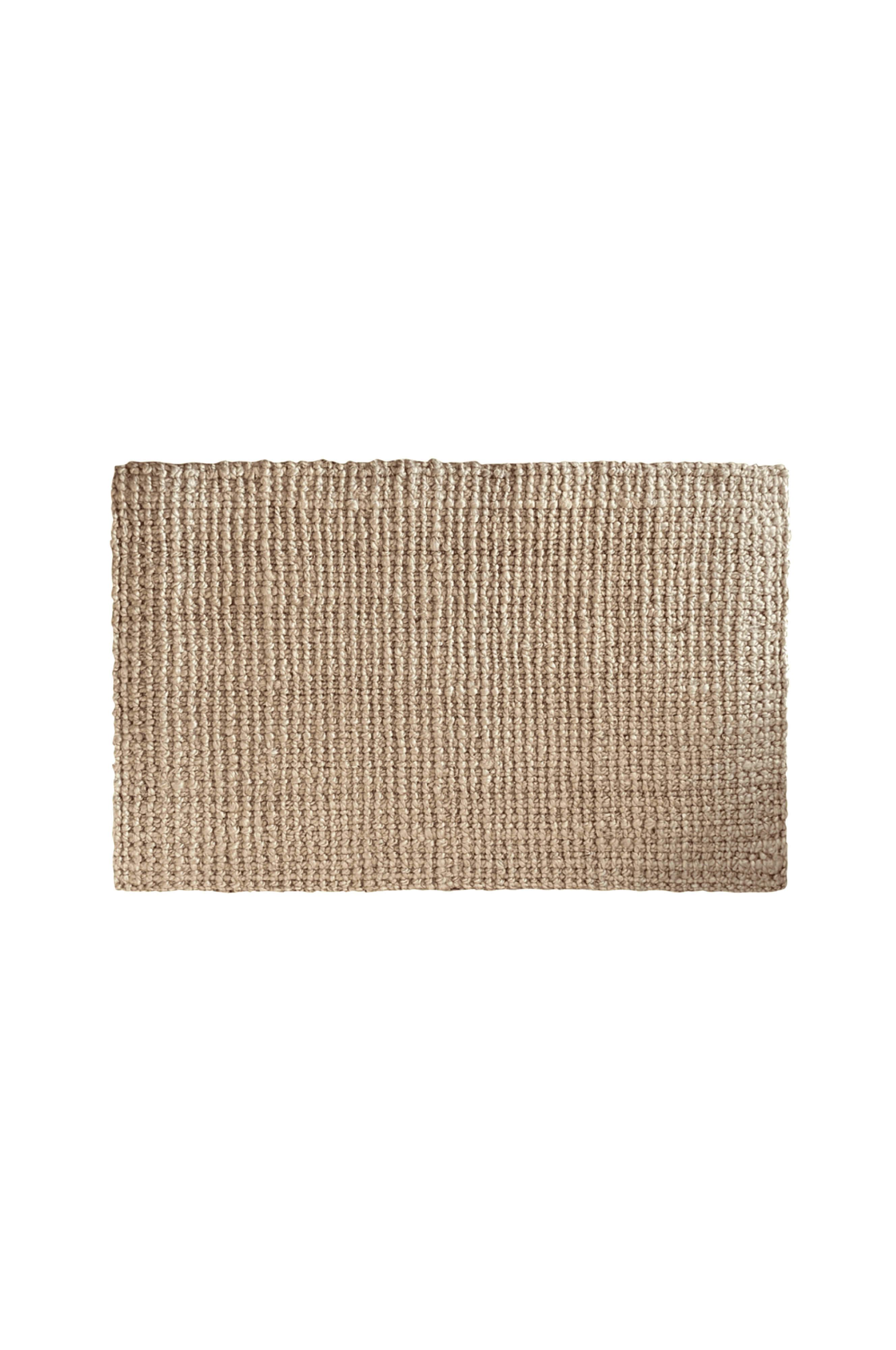 Bukleekudottu ovimatto juuttia. Takaosa luonnonkumia, joka pitää maton napakasti paikoillaan lattialla.