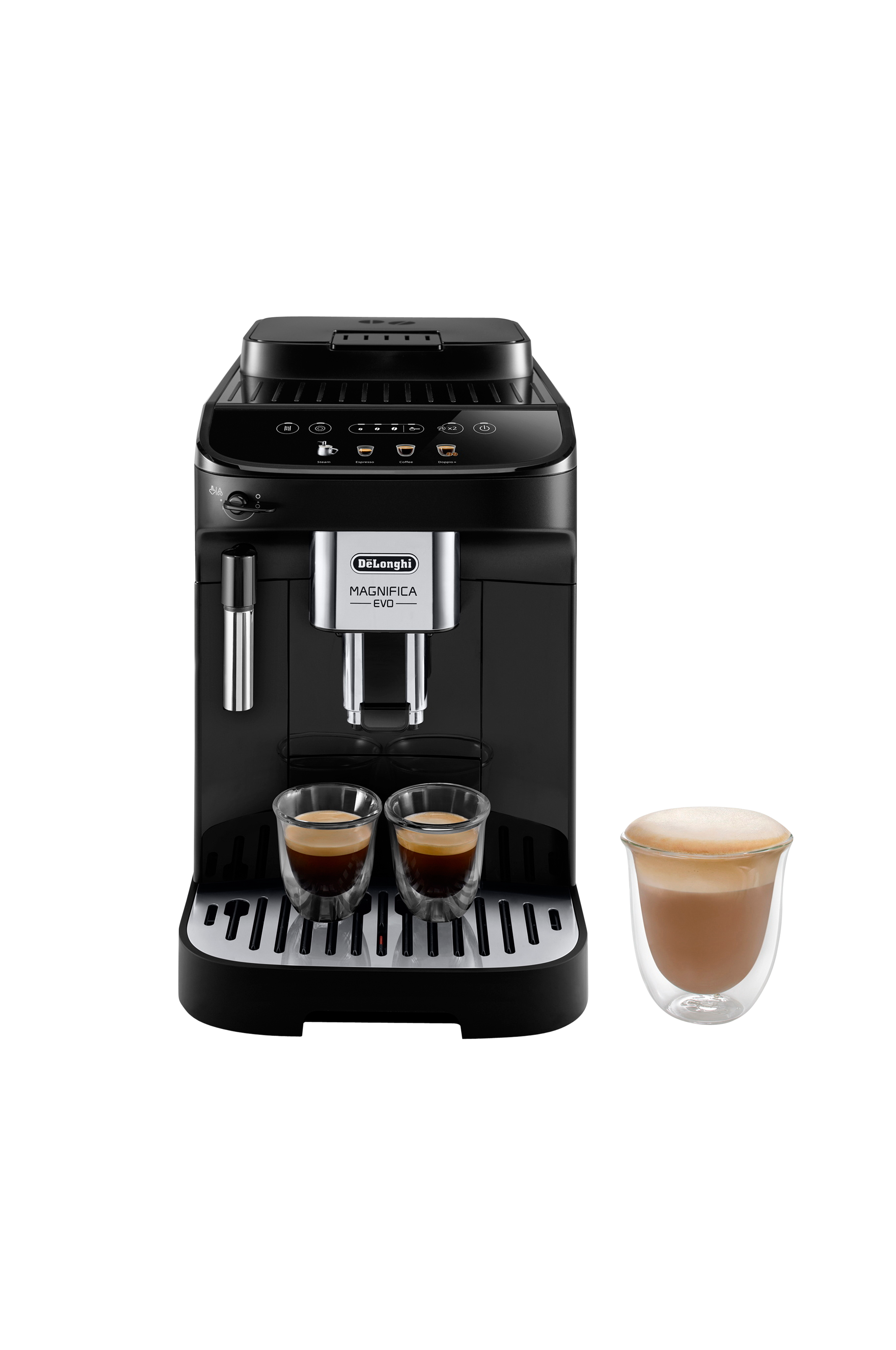 Löydä suosikkijuomasi neljästä eri vaihtoehdosta - Espresso, Espresso x 2, Coffee, Doppio+ sekä höyry/kuuma vesi.