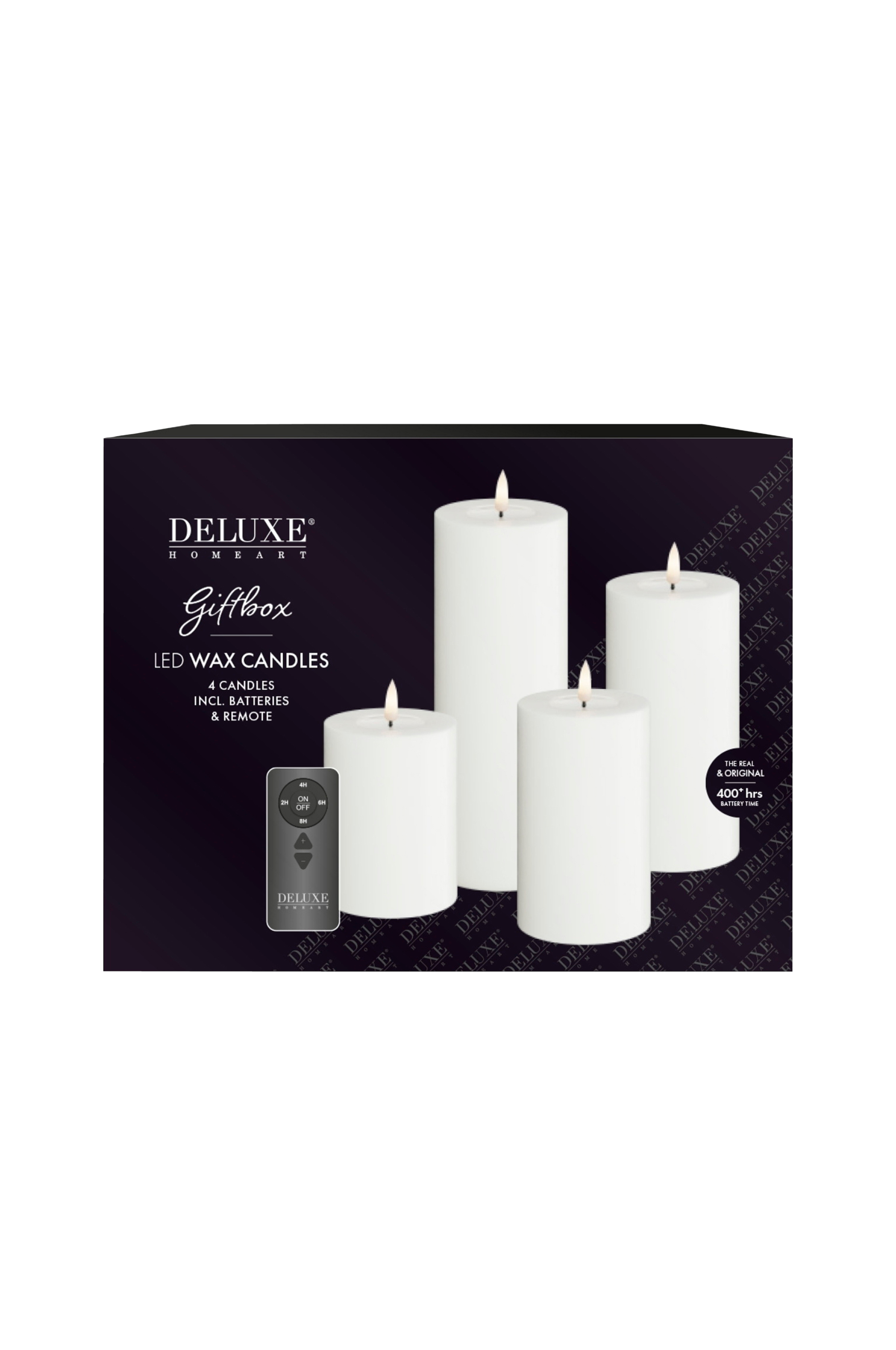 DeluxeHomeart LED-lahjapakkauksen pilarikynttilä 4 kpl + kaukosäädin