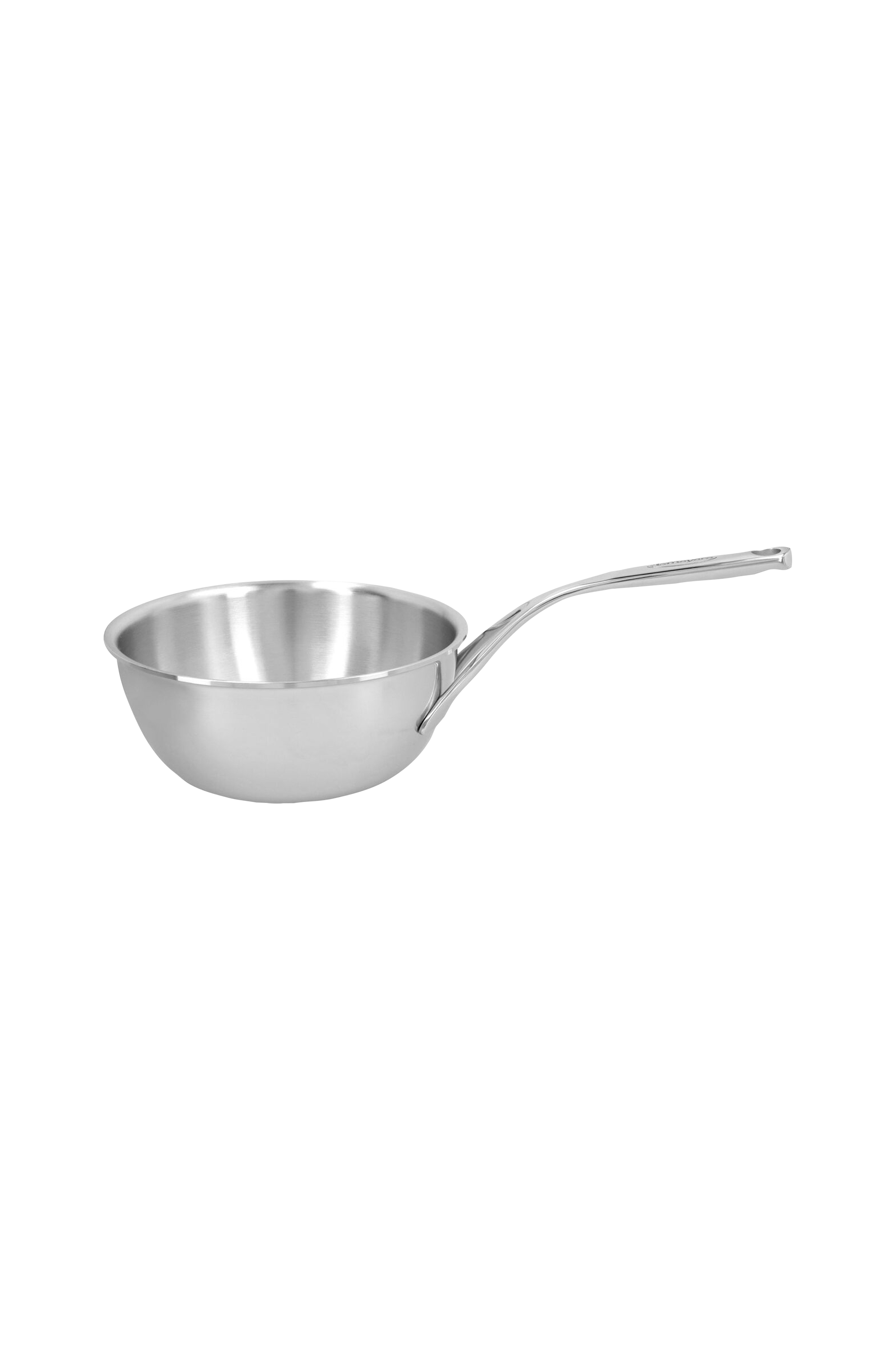 Kartiomainen sauteuse-kattila, jossa on harkittu ja kestävä muotoilu. Astian muodon ansiosta sekoitat sujuvasti ja vatkaat helposti erityisen kuohkeaksi. Erityisen kaatoreunan ansiosta kaadat helposti kastikkeet ja nesteet läikyttämättä.