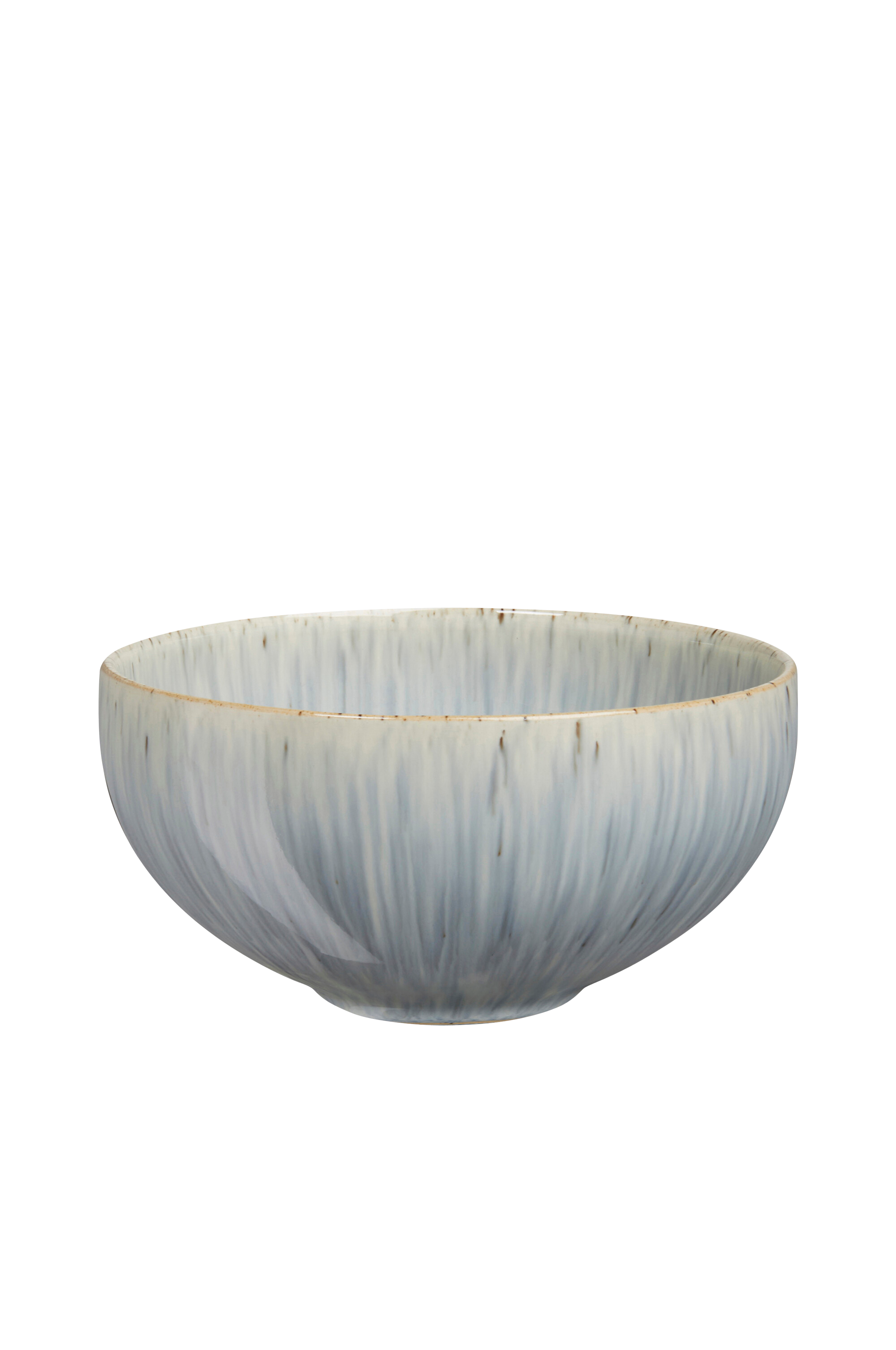 Denbyn Halo-sarjan nuudelikulho. Halo-sarjan kaikkien osien lasitteessa on ainutlaatuisia värivaihteluita, ja kivitavarasta valmistetun kulhon pehmeät muodot korostavat upeasti sen yksityiskohtia. Kulho sopii täydellisesti aasialaisten ruokalajien, keittojen ja jälkiruokien tarjoiluun.