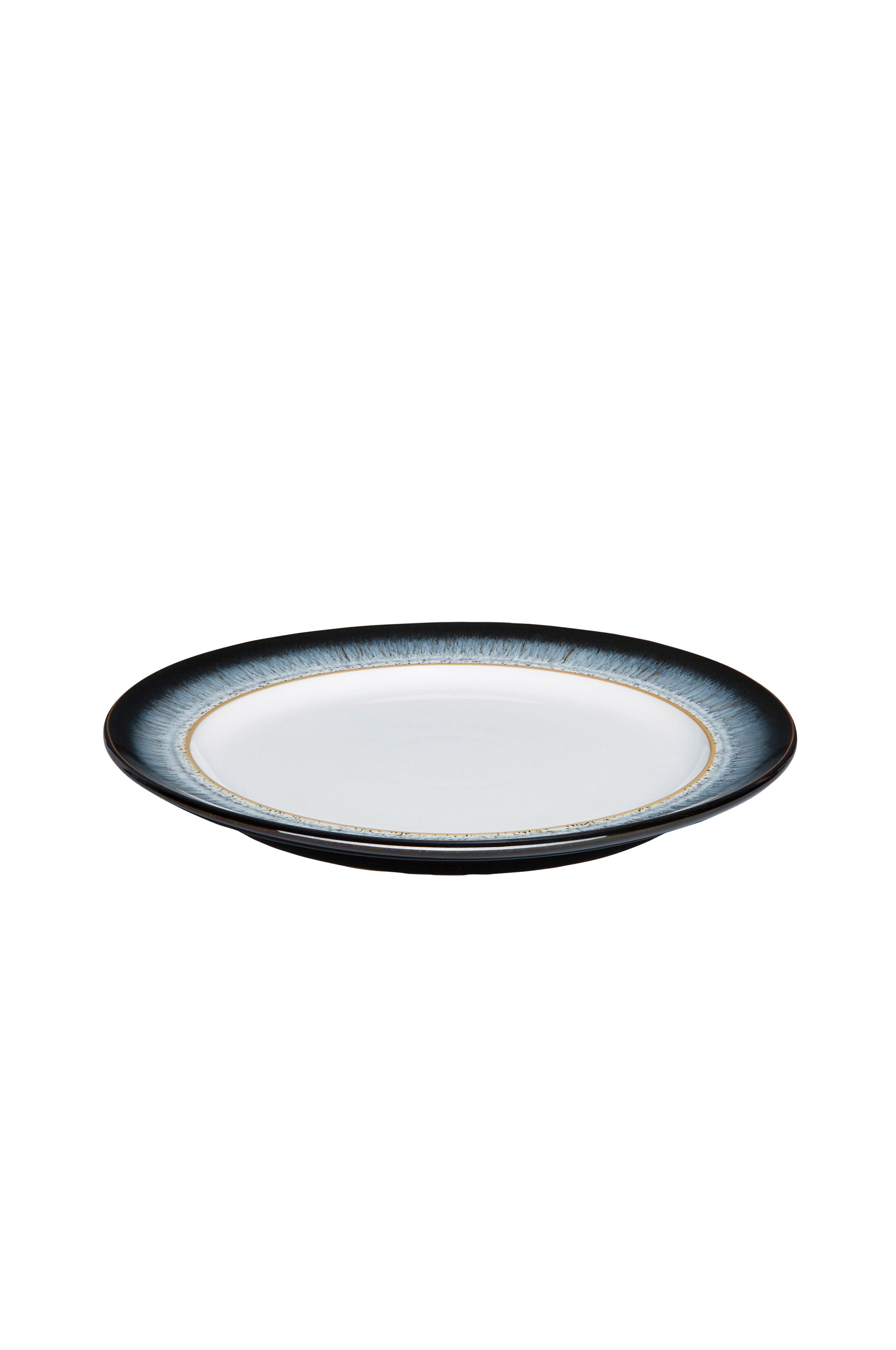 Denbyn Halo-sarjan ruokalautanen. Ainutlaatuinen, vaalean ja tumman harmaan sävyinen lasite antaa kauniin pilkukkaan viimeistelyn ja tekee Halosta suositun astiaston. Voidaan käyttää uunissa, mikroaaltouunissa, astianpesukoneessa ja pakastimessa.