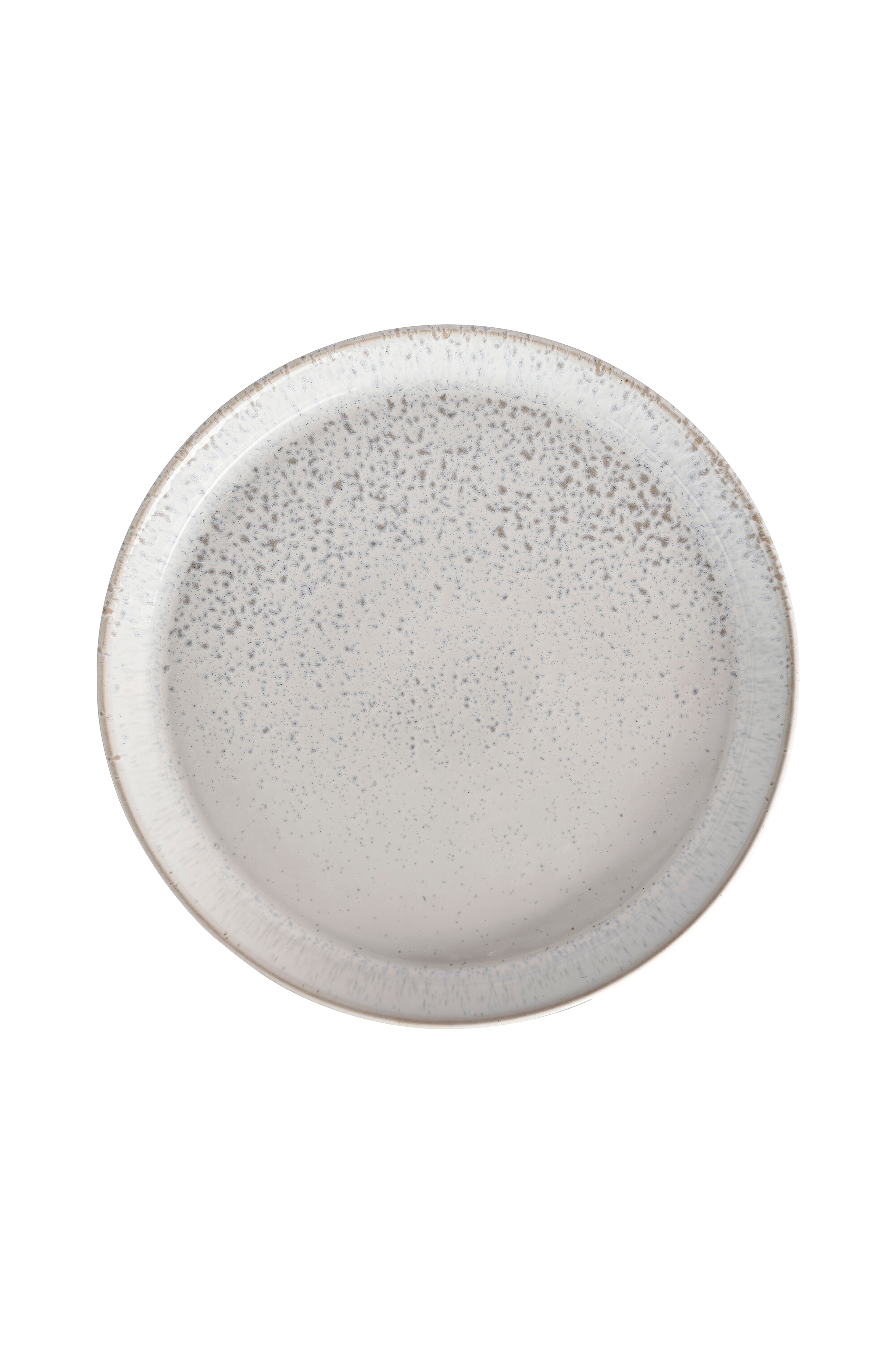 Denbyn Kiln-sarjan lautanen. Sarjan tuotteissa yhdistyvät pehmeät valkoisen, harmaan ja beigen sävyt sekä klassinen englantilainen käsityö, ja mutkattoman muotoilunsa ansiosta sarjan tuotteet on helppo yhdistää muihin astioihin ja ne korostavat kauniisti tarjoiltavaa ruokaa. Ainutlaatuinen pilkullinen lasite antaa kaikille tuotteille yksilöllisen kuvioinnin ja ilmeen. Voidaan käyttää uunissa, mikroaaltouunissa, astianpesukoneessa ja pakastimessa.