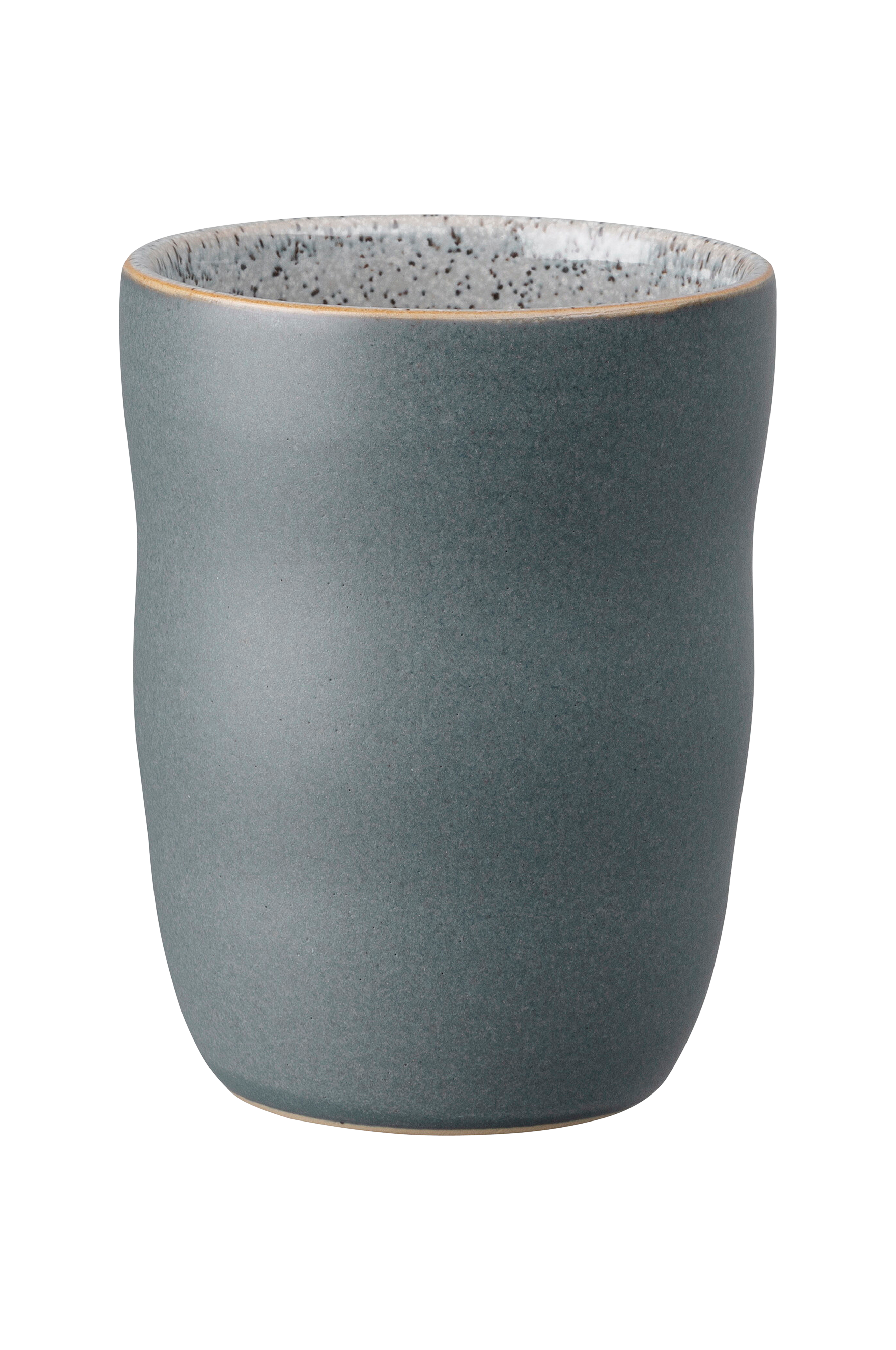 Käsintehty kahvaton muki, jossa fantastinen Studio Grey -lasite. Muki sopii virvoitusjuomille ja virkistävälle appelsiinimehulle tai lounaskeittojen lämmittämiseen. Monikäyttöinen muki sopii myös värikynille, hammasharjoille tai siveltimille. Studio Grey -sarjan tuotteissa on hillityt sävyt ja harmaa reaktiivinen lasite, jota kehystää syvä ja täyteläinen hiilinauha korostaen pehmeän harmaanvalkoista sisäpuolta.