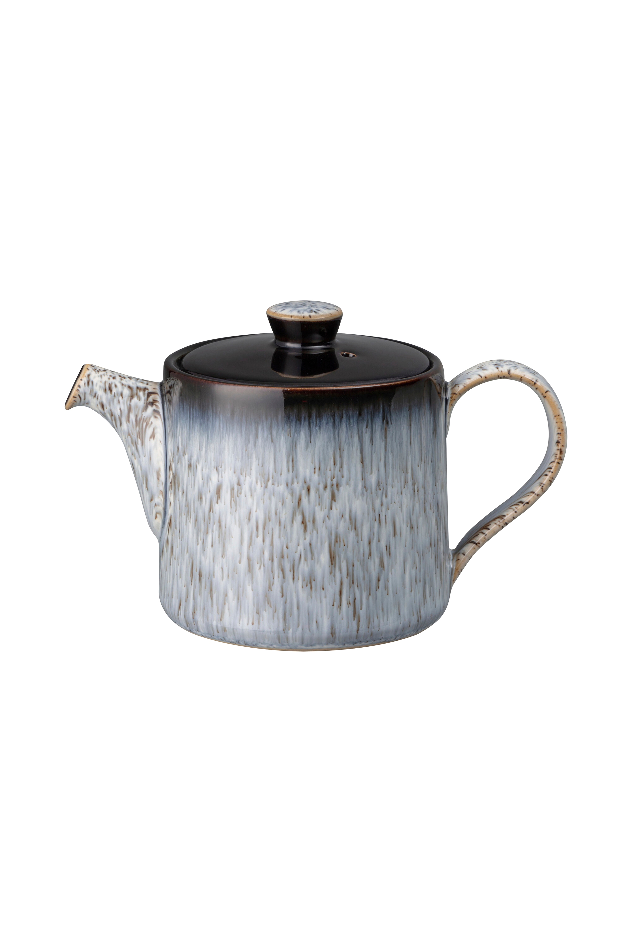 Denbyn Halo-sarjan pieni teekannu. Teekannussa on sisäänrakennettu, ruostumattomasta teräksestä valmistettu siivilä. Teekannu kestää uunin, mikroaaltouunin, astianpesukoneen ja pakastuksen.