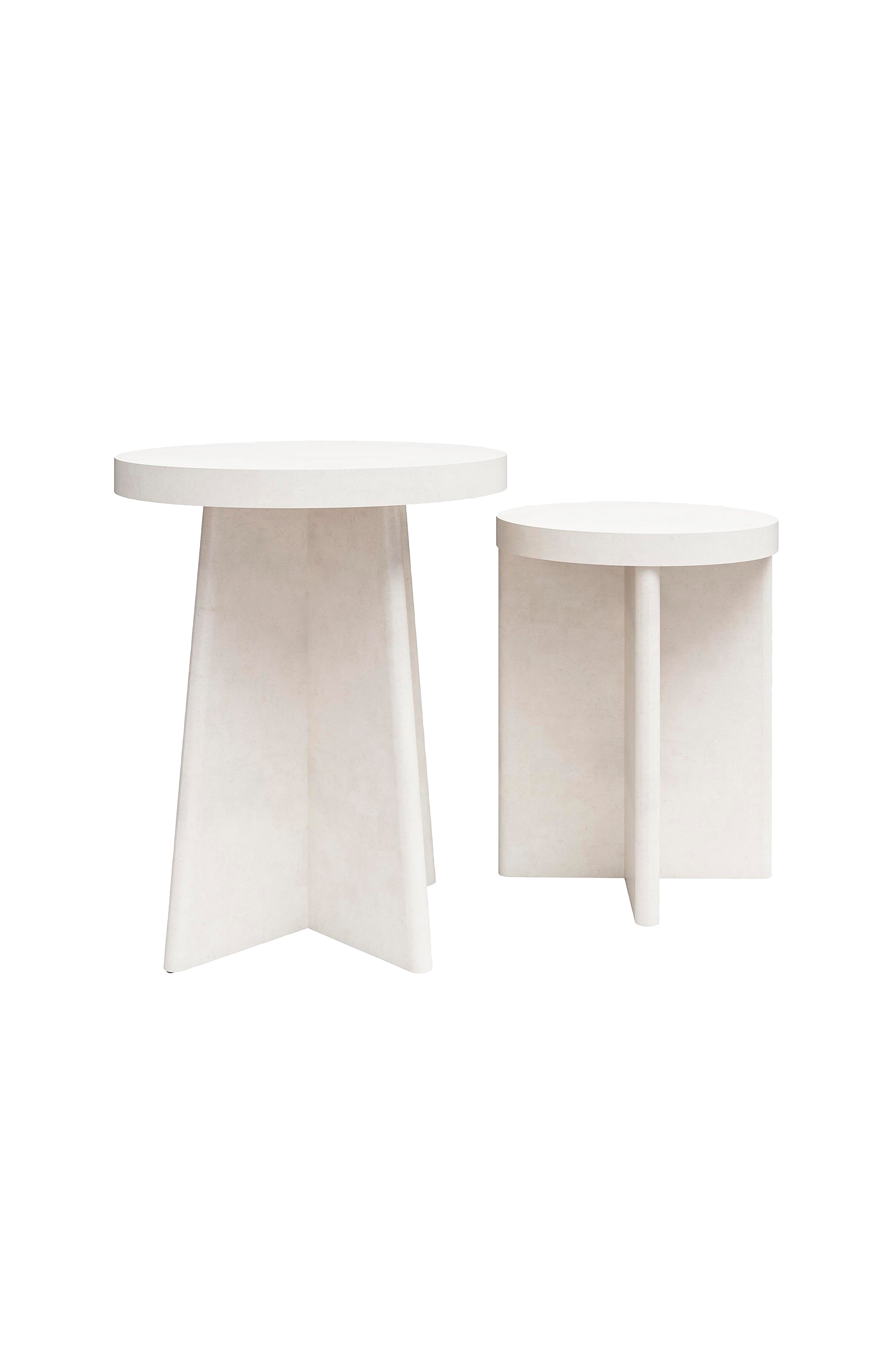 Koe modernin minimalismin ja maalaismaisen lämmön täydellinen yhdistelmä olohuoneessasi ameriwood home -yhtiön pyöreiden päätypöytien avulla. Nämä kermanvärisellä tekokipsillä viimeistellyt pöydät lisäävät varmasti luonnetta tilaan. Setti sisältää yhden pitkän ja yhden lyhyen päätypöydän, joissa kummassakin on tukeva jalustapohja ja pyöreät levyt. Valmistettu kestävästä mdf-levystä ja konepuusta. Ne on helppo koota, sillä kukin pöytä koostuu kolmesta osasta, jotka liukuvat ja lukittuvat saumattomasti yhteen. Pöydät toimitetaan litteinä yhdessä laatikossa.