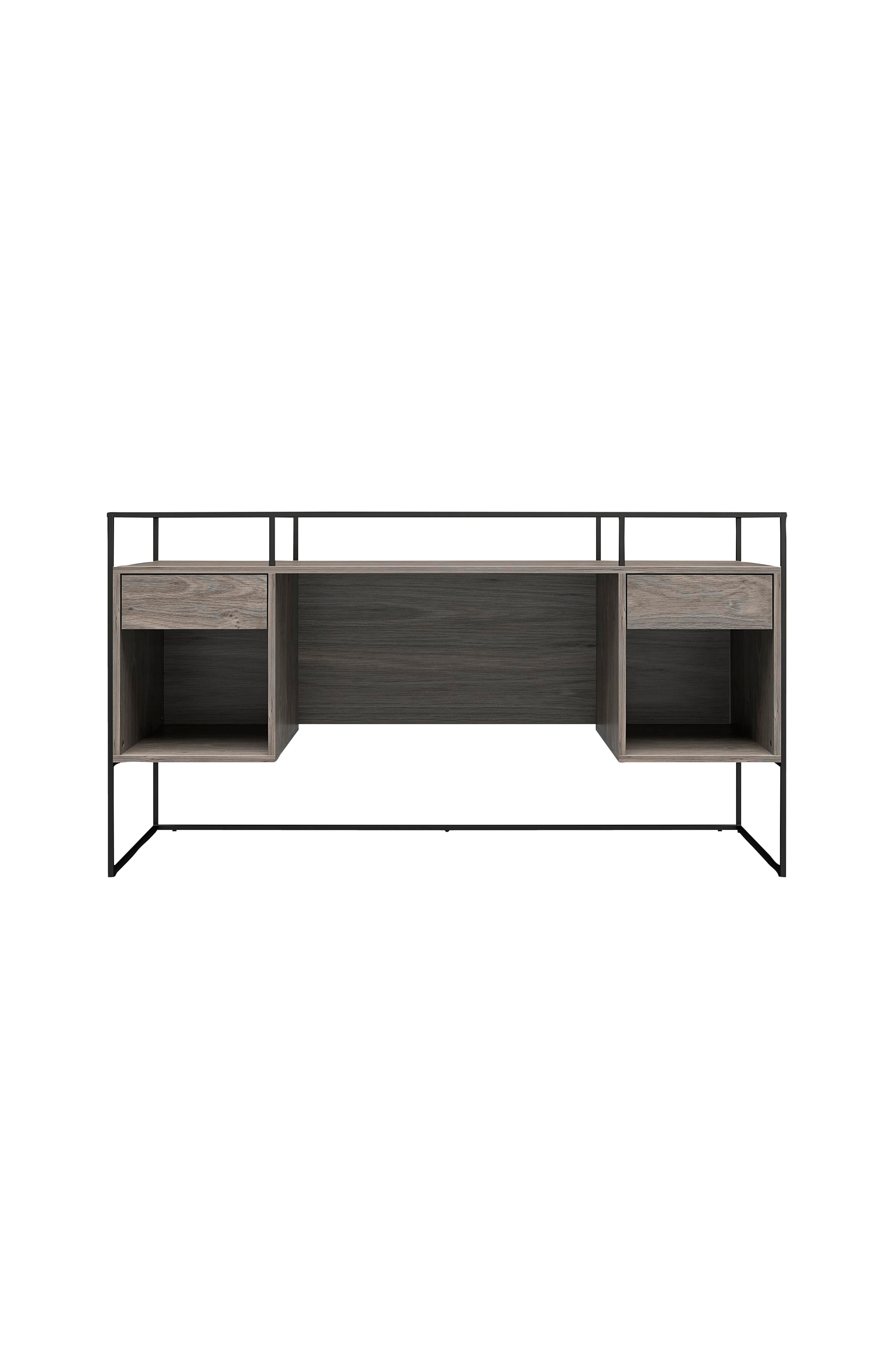 Muunna kotitoimisto moderniksi Camley Modern Desk -kirjoituspöydällä, jossa on pöytälevy uurrettua lasia, kaksi laatikkoa ja lisäsäilytystila. Kirjoituspöydän runko on tukevaa jauhemaalattua metallia ja muut osat insinööripuutuotetta, kestävää laminoitua MDF-levyä ja uurrettua lasia - kokonaisuus tuo huoneeseen täydellisen yhdistelmän hiomatonta hienostuneisuutta ja viehättävää teollishenkeä. Kirjoituspöydällä on monia etuja, kuten kaksi isoa laatikkoa, niiden alapuoliset avolokerot ja lisäsäilytystila uurretun lasilevyn alla. Viimeistele tyyli muilla Camley-malliston tuotteilla (myydään erikseen). Koottava. Suosittelemme, että kaksi aikuista kokoaa tuotteen. Kootun kirjoituspöydän mitat ovat L 139 x S 50 x K 76 cm. Paino: 35 kg.