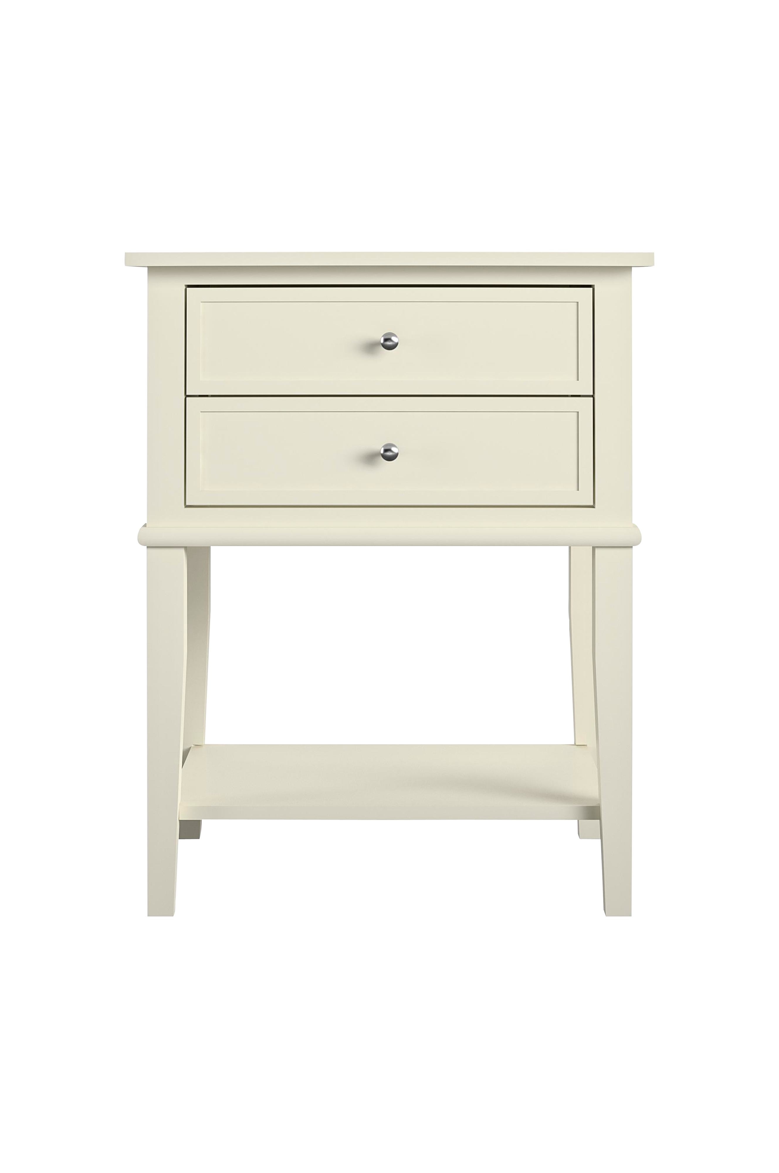 Franklin Accent Table -sivupöytä, jossa kaksi laatikkoa. Kaunis huonekalu sopii täydellisesti sohvan tai sängyn viereen. Sivupöydässä on kaksi tilavaa laatikkoa kaukosäätimille, lasinalusille, lehdille ja muille pienille tavaroille. Pöytälevylle mahtuu valaisin ja lempijuomasi. Hyllytaso alhaalla on erinomainen paikka kirjoille ja lehdille. Suorat linjat ja klassinen viimeistely sopivat täydellisesti nykyiseen sisustukseesi. Toimitetaan osina.