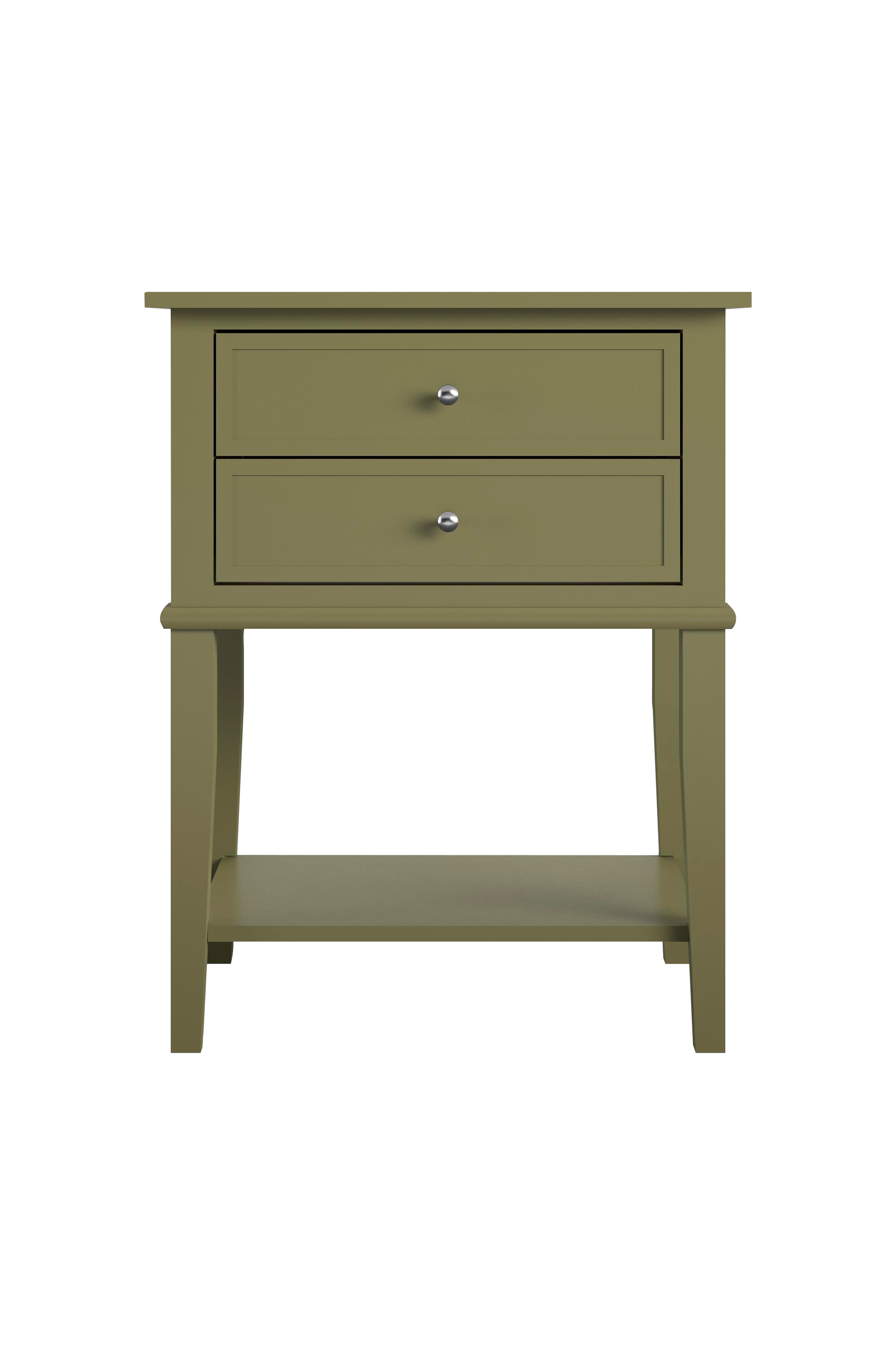 Franklin Accent Table -sivupöytä, jossa kaksi laatikkoa. Kaunis huonekalu sopii täydellisesti sohvan tai sängyn viereen. Sivupöydässä on kaksi tilavaa laatikkoa kaukosäätimille, lasinalusille, lehdille ja muille pienille tavaroille. Pöytälevylle mahtuu valaisin ja lempijuomasi. Hyllytaso alhaalla on erinomainen paikka kirjoille ja lehdille. Suorat linjat ja klassinen viimeistely sopivat täydellisesti nykyiseen sisustukseesi. Toimitetaan osina.