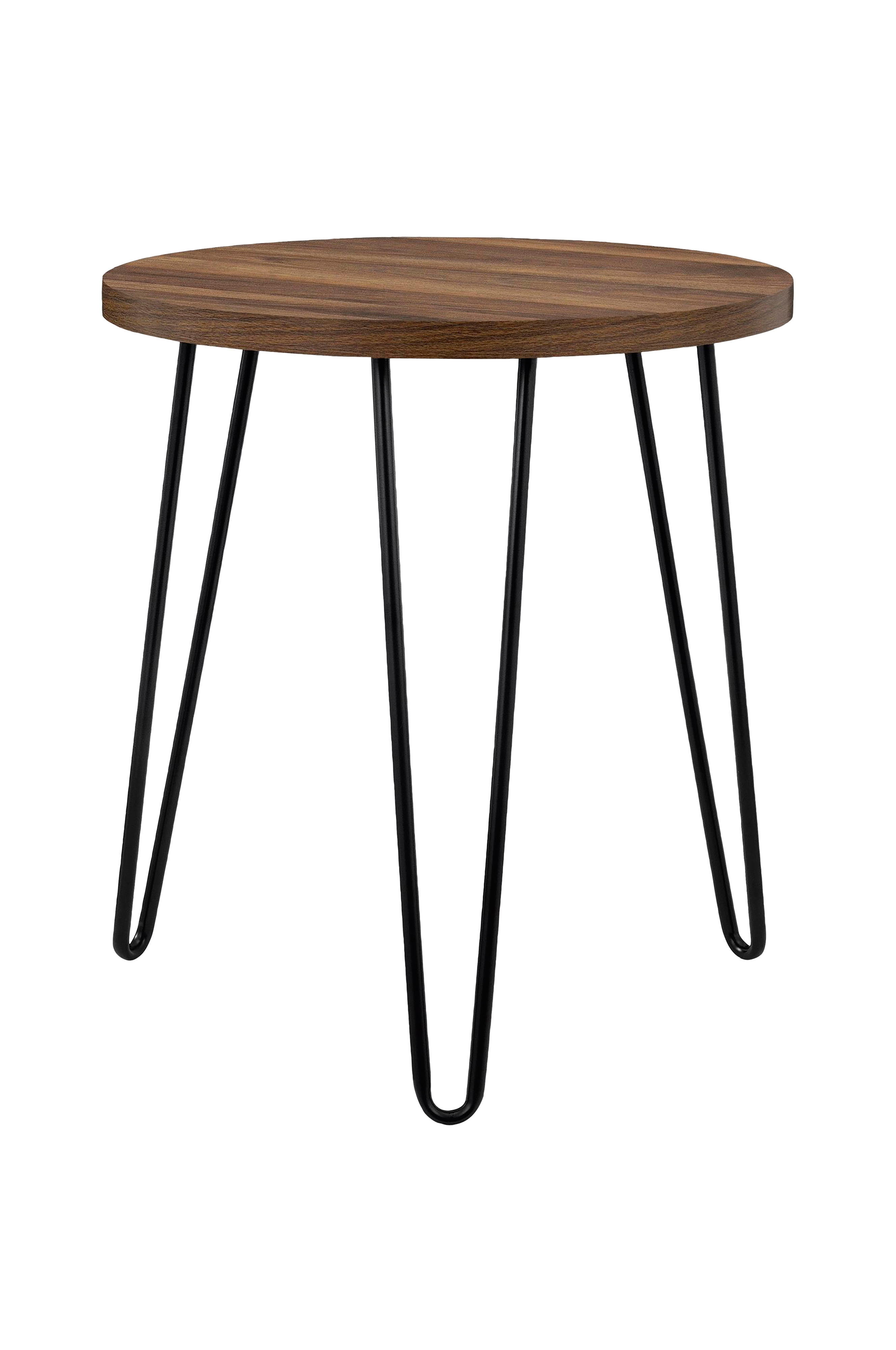 Retrohenkinen Owen Retro Round End Table -sivupöytä. Muotoilu muistuttaa 1950-lukua, ja mustat jalat luovat teollishenkistä tunnelmaa. Samalla patinoitu pyöreä pöytälevy luo rustiikin ilmeen, joka sopii kaikkiin sisustustyyleihin. Isolle pöytälevylle mahtuu lukulamppu, puhelin ja kaukosäätimiä. Pöytä on valmistettu laminoidusta lastulevystä. Erittäin helppo koota. Suosittelemme, että kaksi aikuista kokoaa tuotteen.