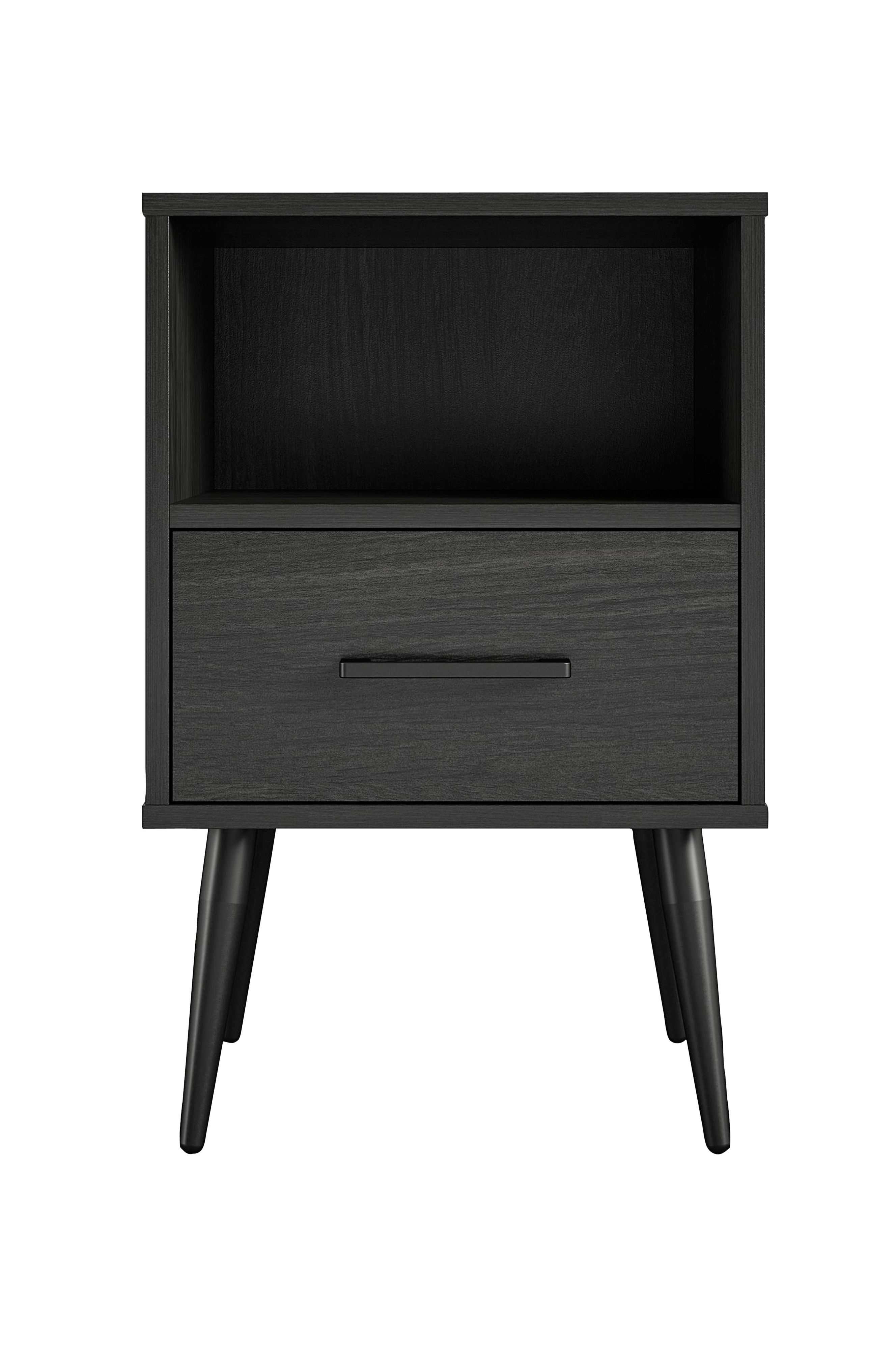 Wilson End Table -sivupöytä tuo olohuoneeseen modernia retrohenkeä. Pöytä on valmistettu laminoidusta lastulevystä, jossa on klassinen puuta muistuttava viimeistely. Pöytälevy on täydellinen kaukosäätimille, lukulampulle ja koristeille. Hyllylle voi laittaa kirjoja ja lehtiä tai elektroniikkaa. Laatikko sopii erinomaisesti pienille tavaroille, johdoille ja latureille. Sivupöytä toimitetaan osina litteässä pakkauksessa. Suosittelemme, että kaksi aikuista kokoaa tuotteen. Kootun sivupöydän mitat K 61 x L 39 x S 39 cm.