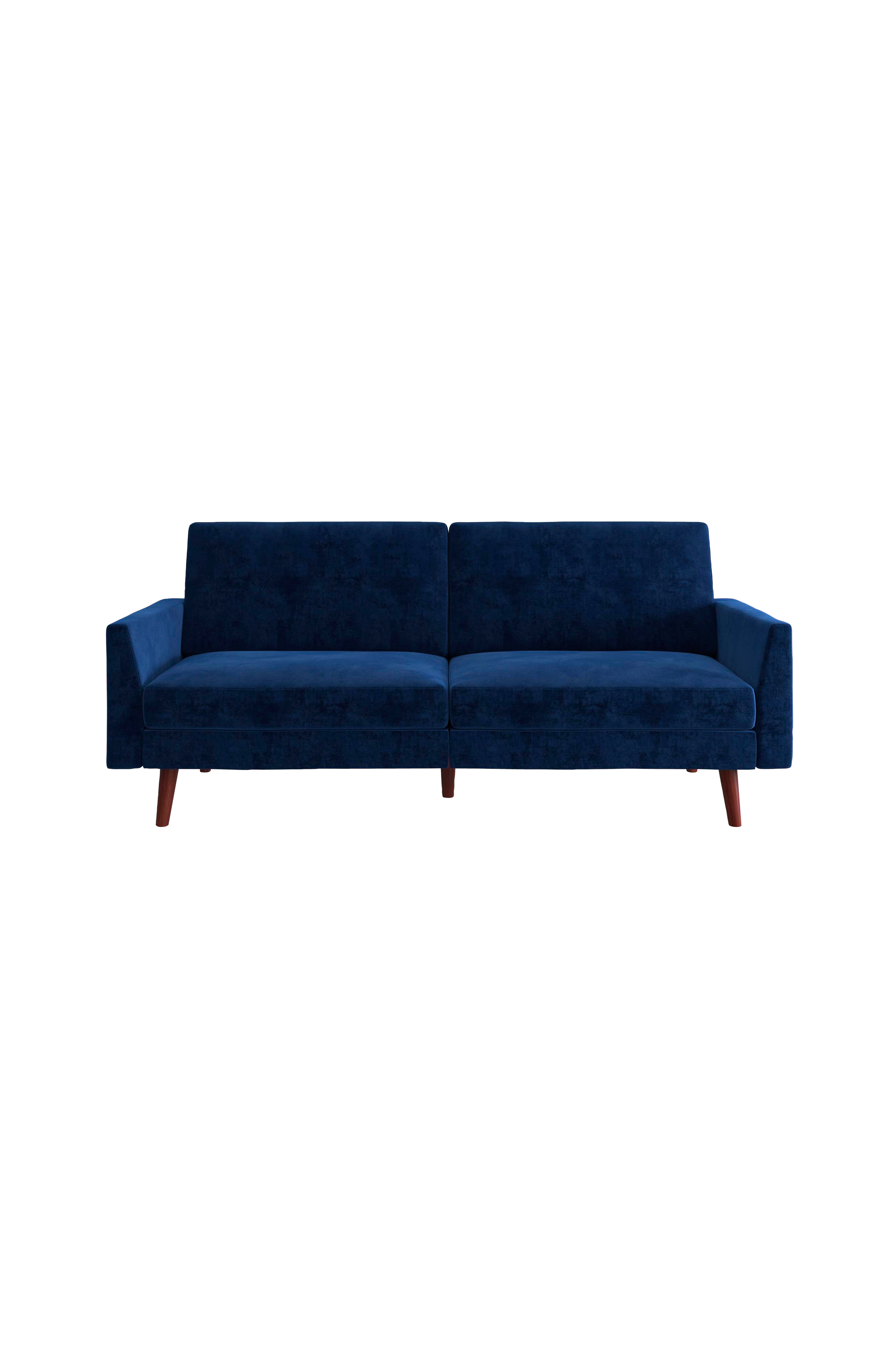 Jules-vuodesohva on modernin eleganssin ilmentymä. Pehmeän samettiverhoilun, kapeiden, suorien käsinojien ja levenevien puujalkojen ansiosta se sopii kaikkiin sisustustyyleihin. Massiivipuinen runko takaa erinomaisen kestävyyden ja vakauden ja istuintyynyjen pussijouset parhaan mukavuuden. Jules-vuodesohvassa on monipuolinen muotoilu, ja se sopii täydellisesti pienehköön olohuoneeseen. Jaettu selkänoja voidaan laskea toisistaan riippumatta lepo- ja nukkuma-asentoon, joten sohvaa voidaan käyttää yövieraiden varavuoteena. Kompaktista sohvasta on saatavana useita värejä, se toimitetaan helposti käsiteltävässä pakkauksessa ja se on helppo koota.