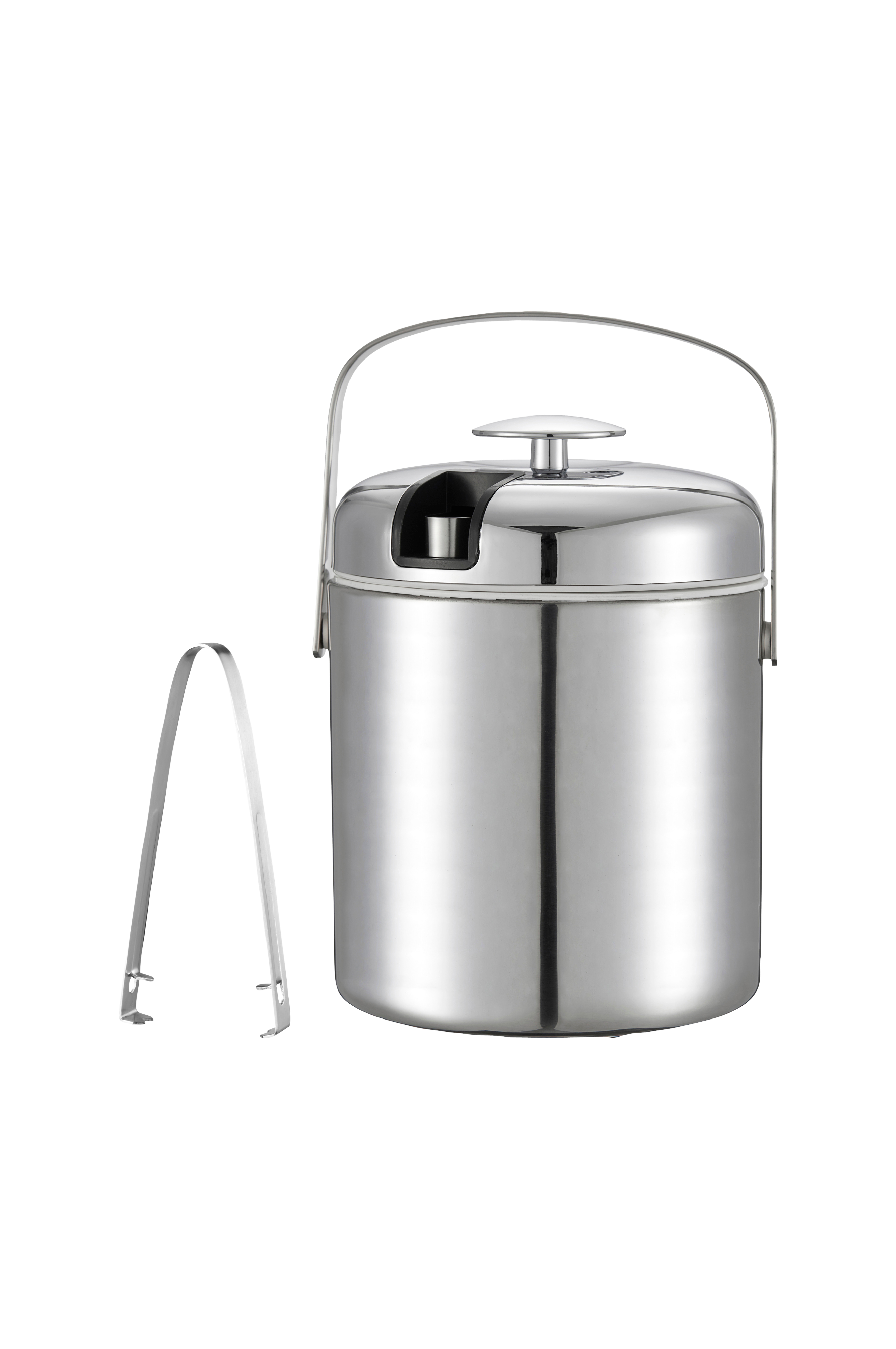 Kannellinen Barry-jääastia, jossa krominvärinen pinnoite ja lämpötoiminto. Mukana jääpalapihdit. Vetoisuus 1,3 litraa.