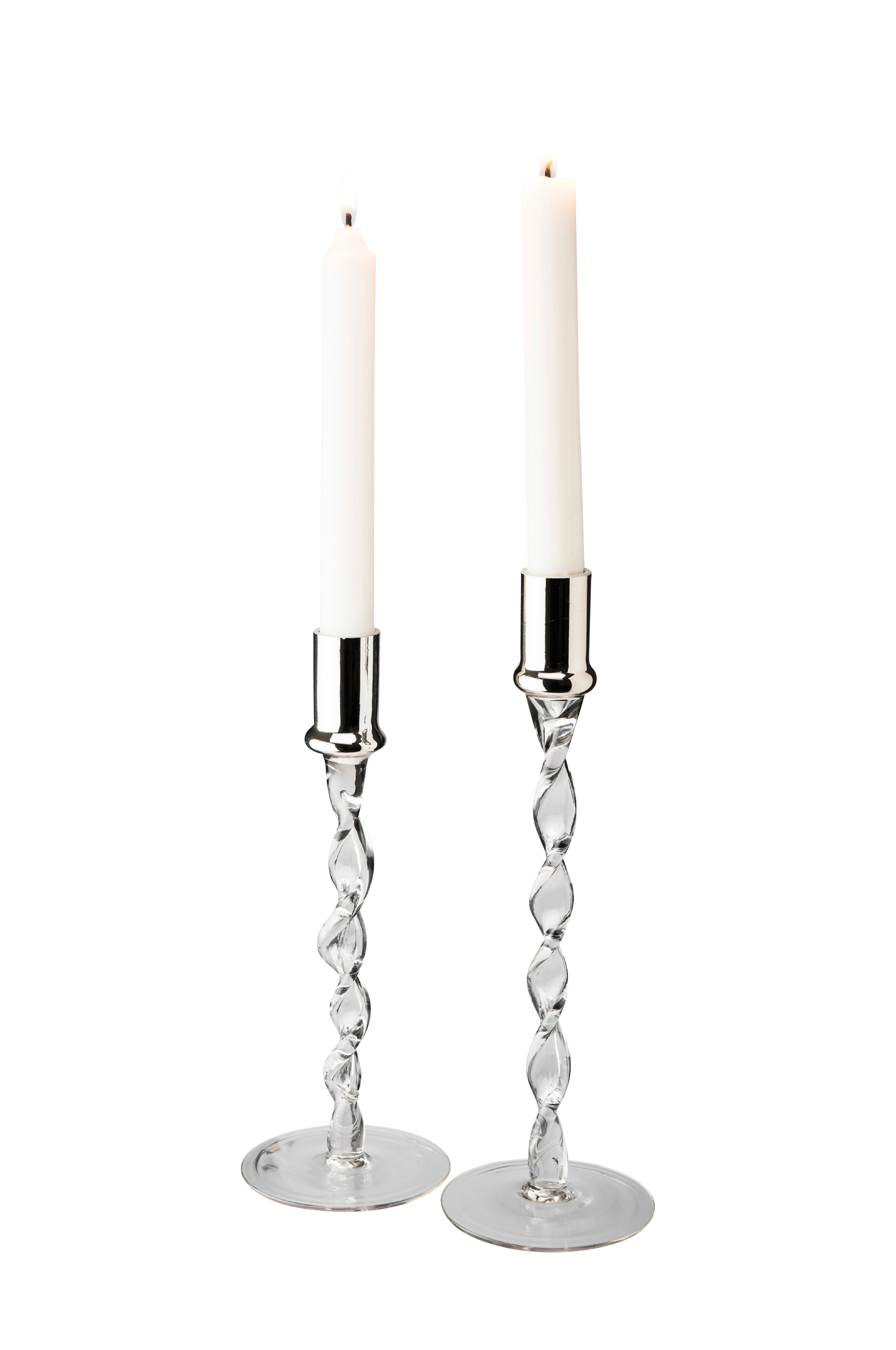 Twist-kynttilänjalat, joissa krominvärinen yläosa. Korkeudet 24 cm ja 27 cm. 2/pakkaus.