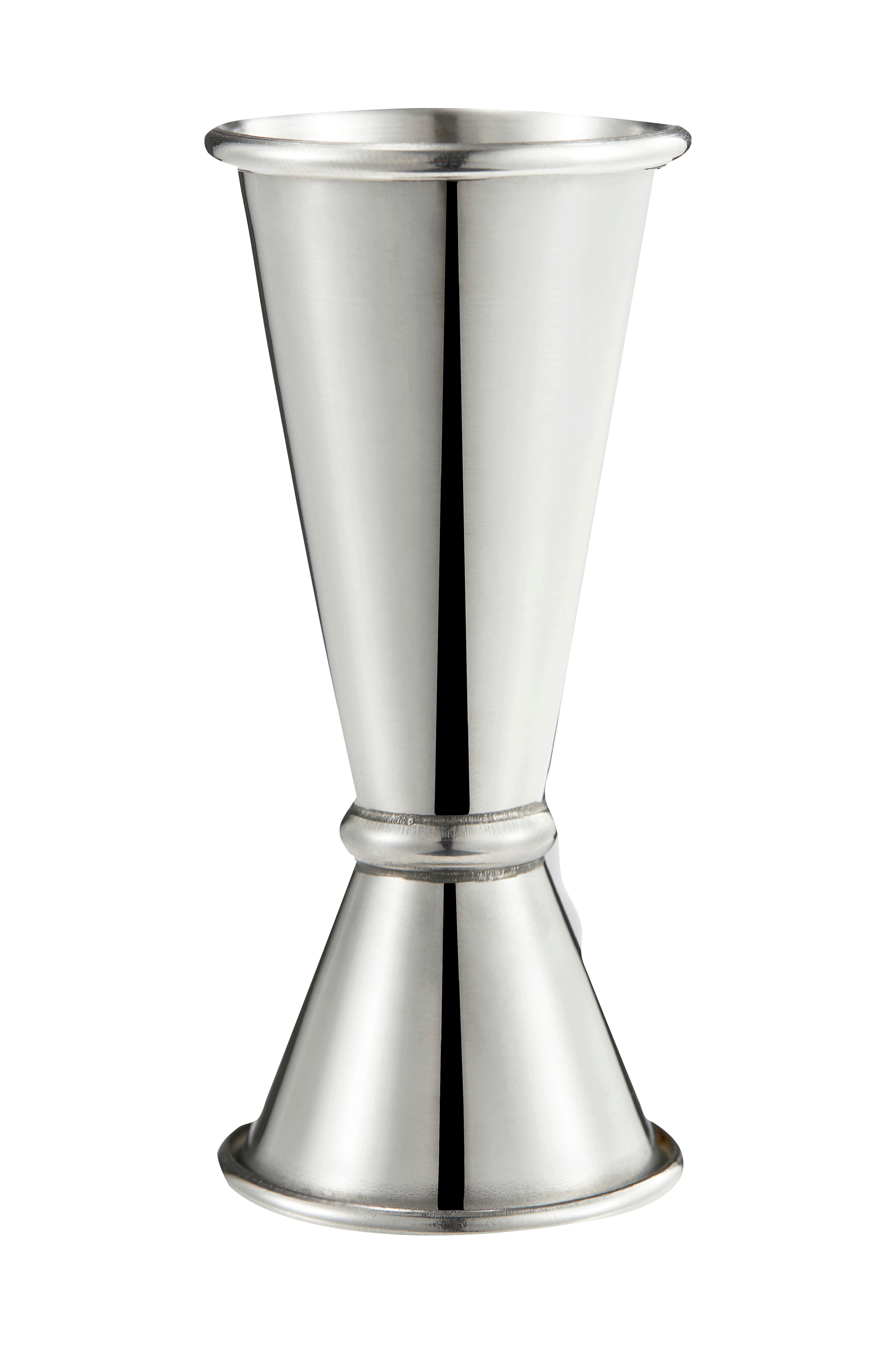 Käännettävä Beth-mittalasi ruostumatonta terästä, 3-5 cl. Korkeus 11,3 cm, halkaisija 4,3 cm.