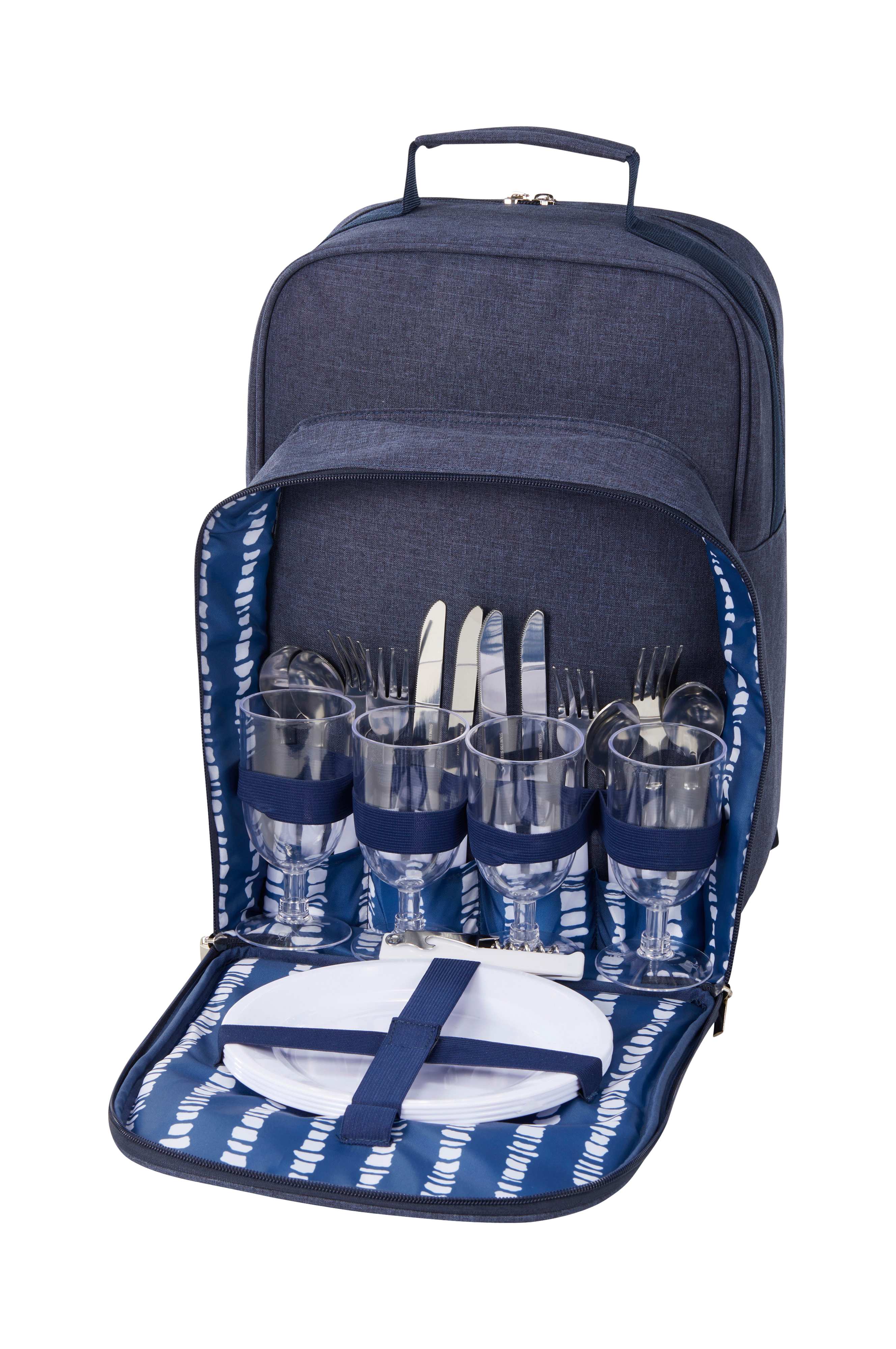 Pari-piknikreppu neljälle hengelle, harmaa, tarvikkeet mukana. 30x19x42 cm